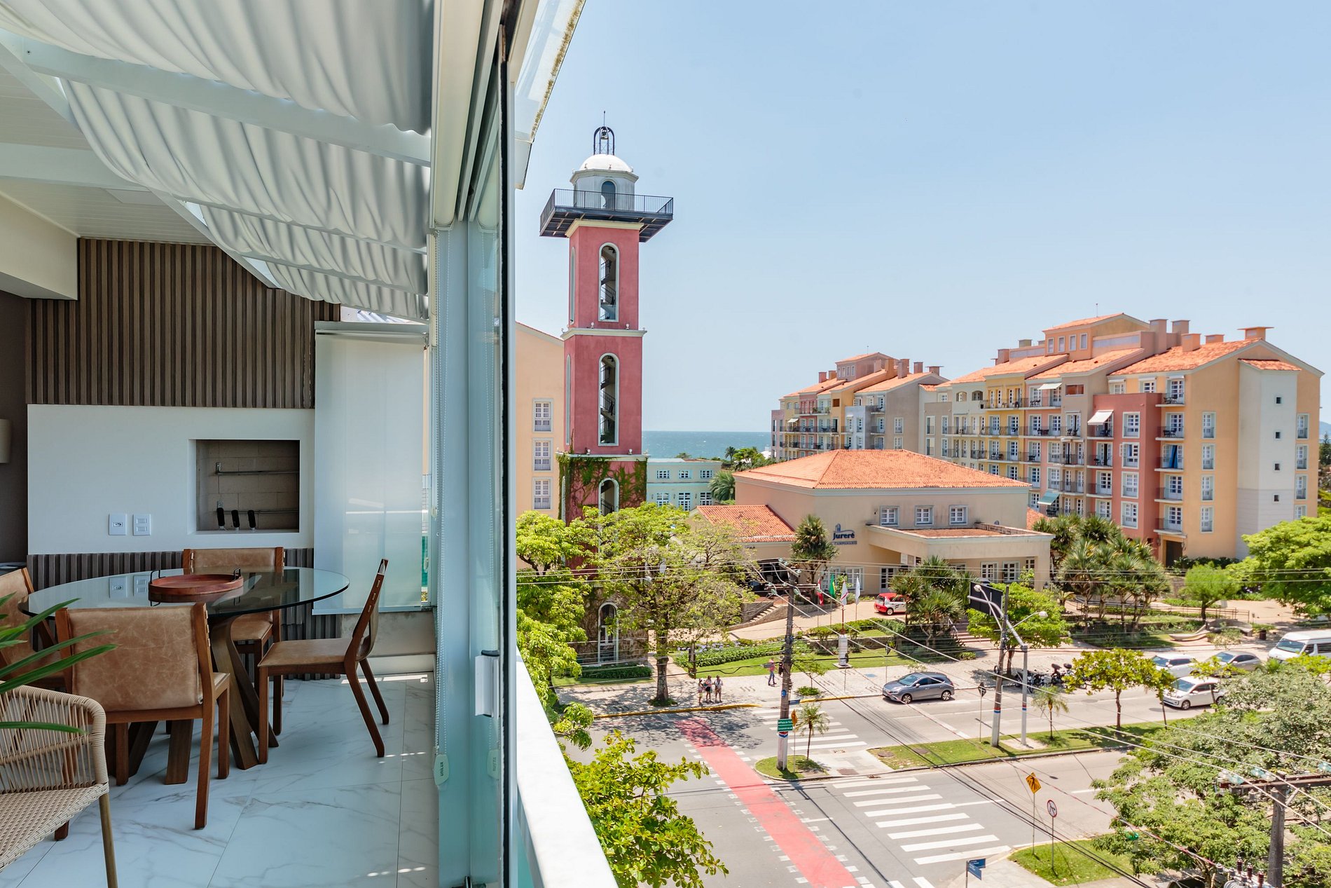 - Amplio balcón con barbacoa, mesa y sillas y vistas a Jurerê;