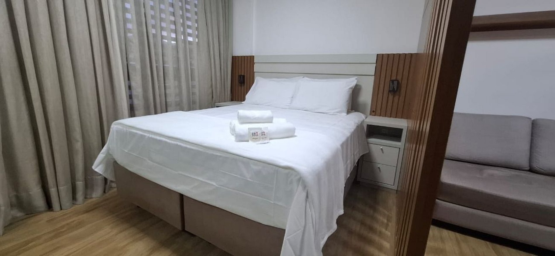 - 1 cama king, sofá cama, armario, TV y aire acondicionado;