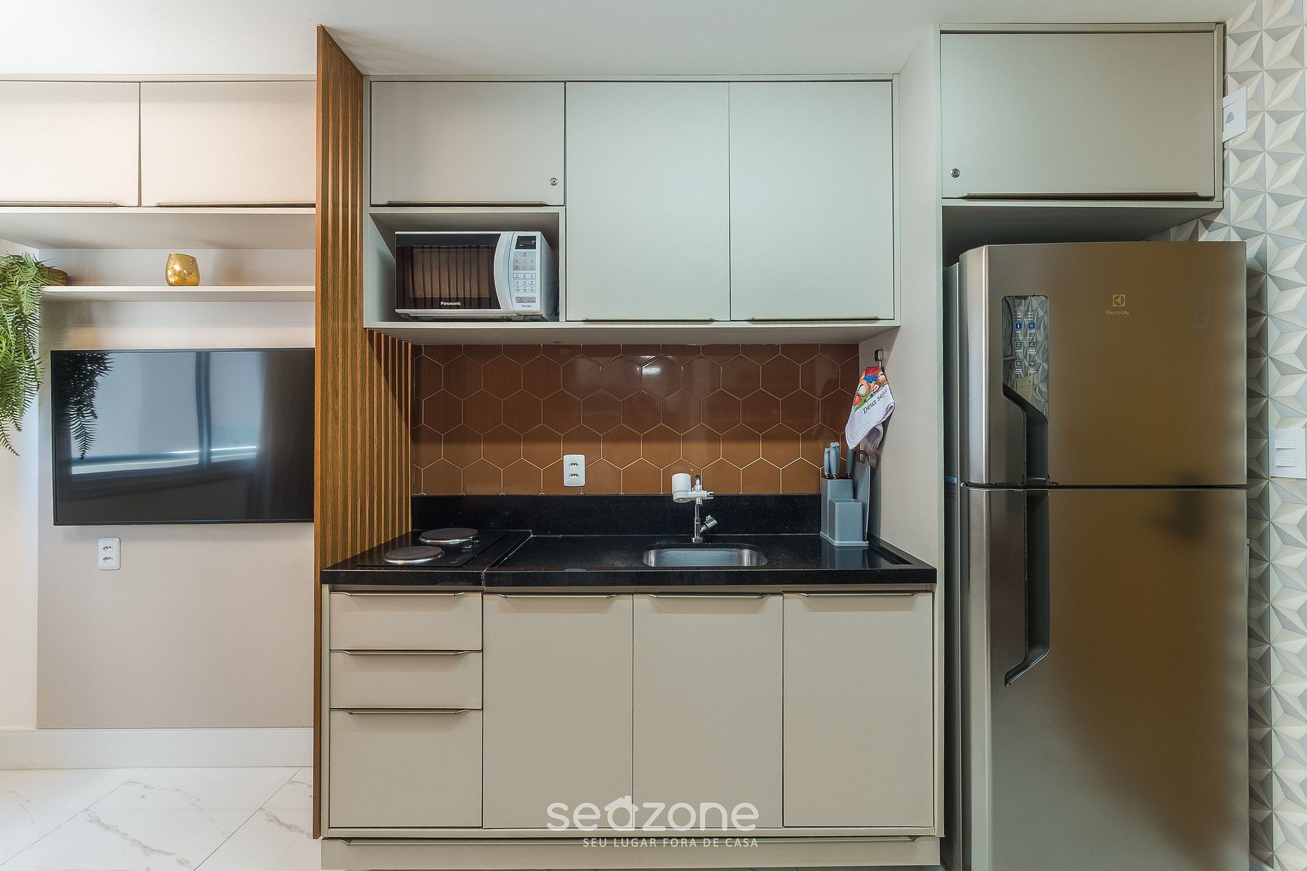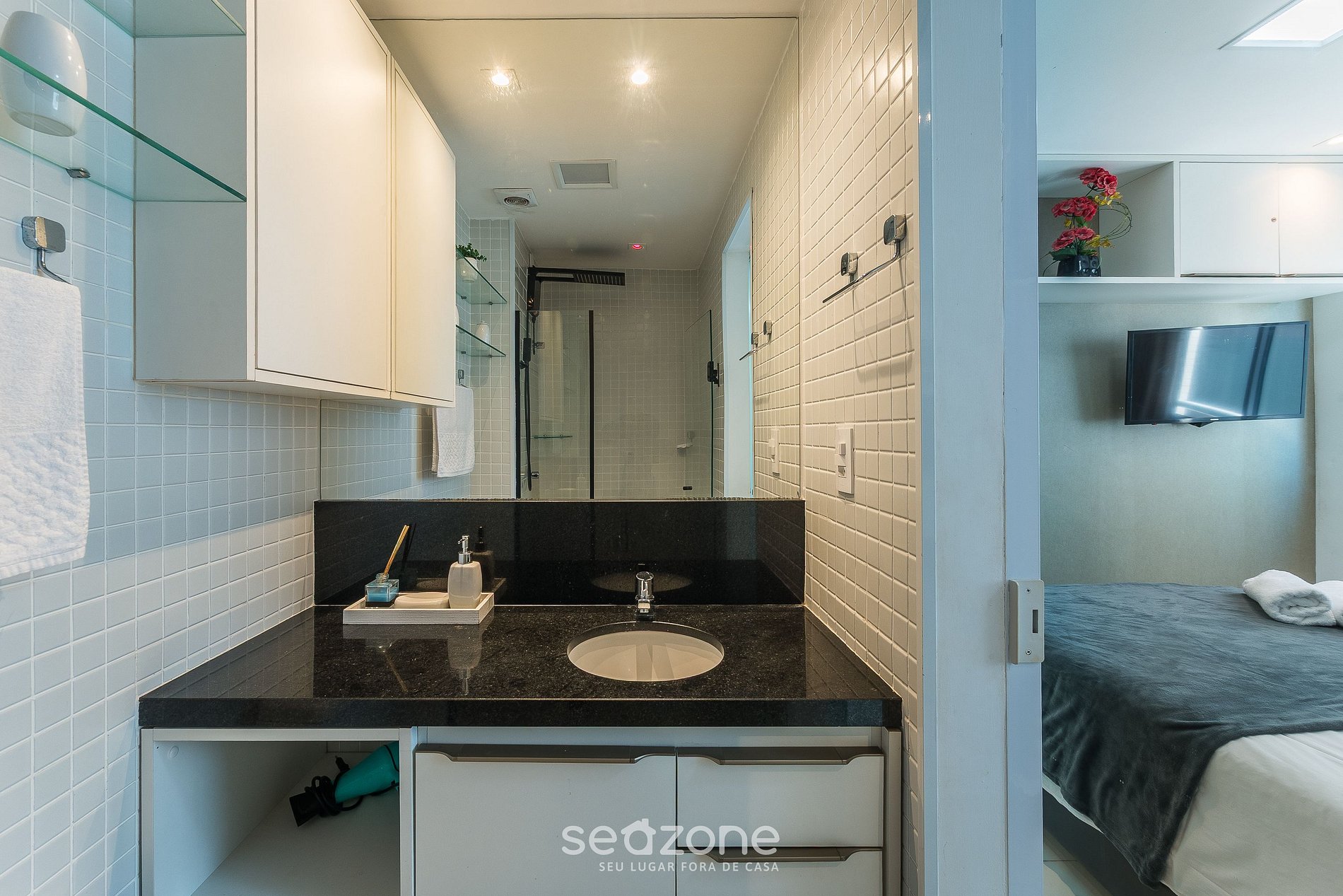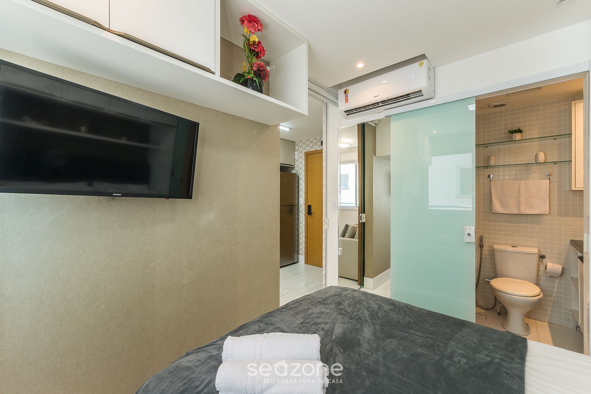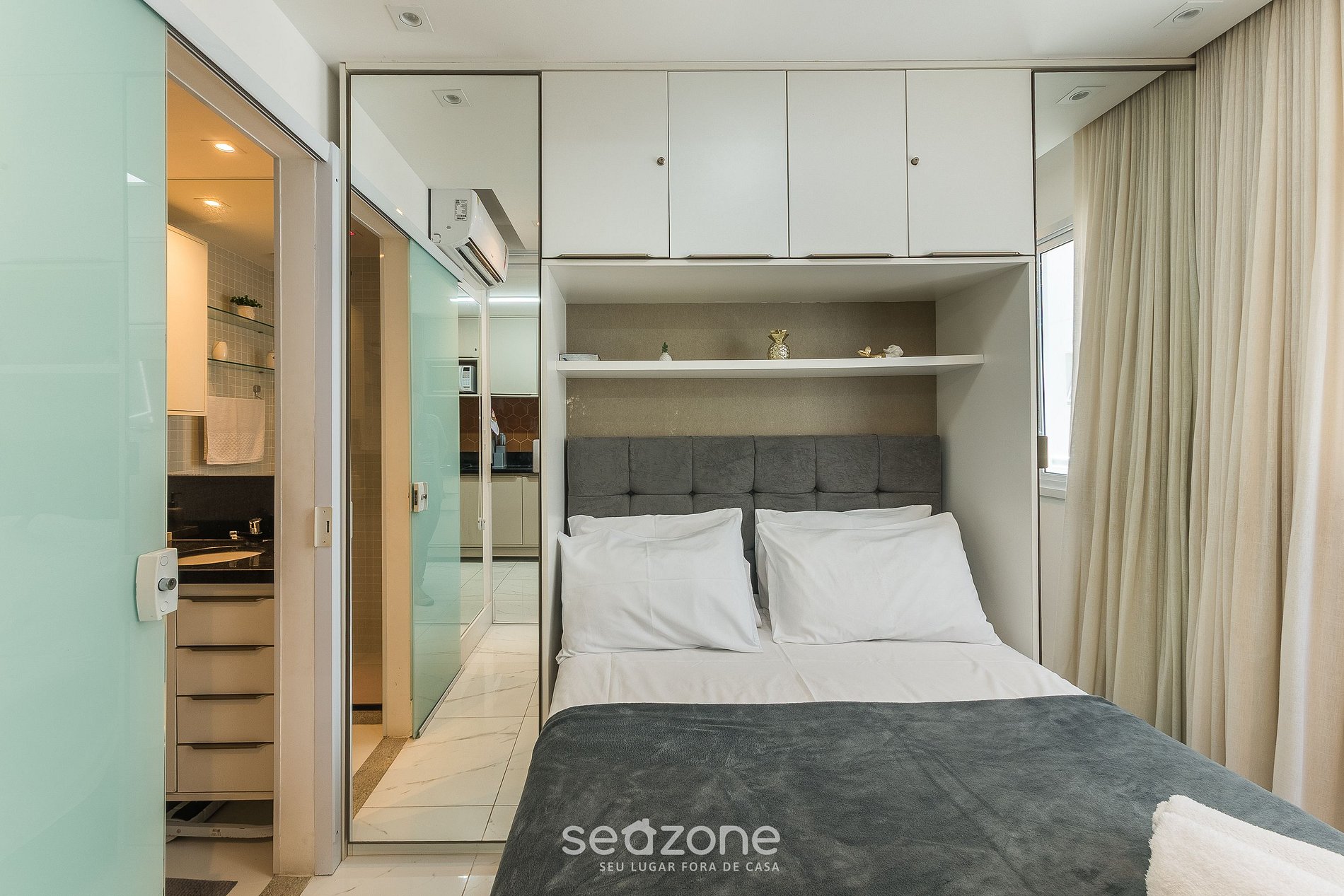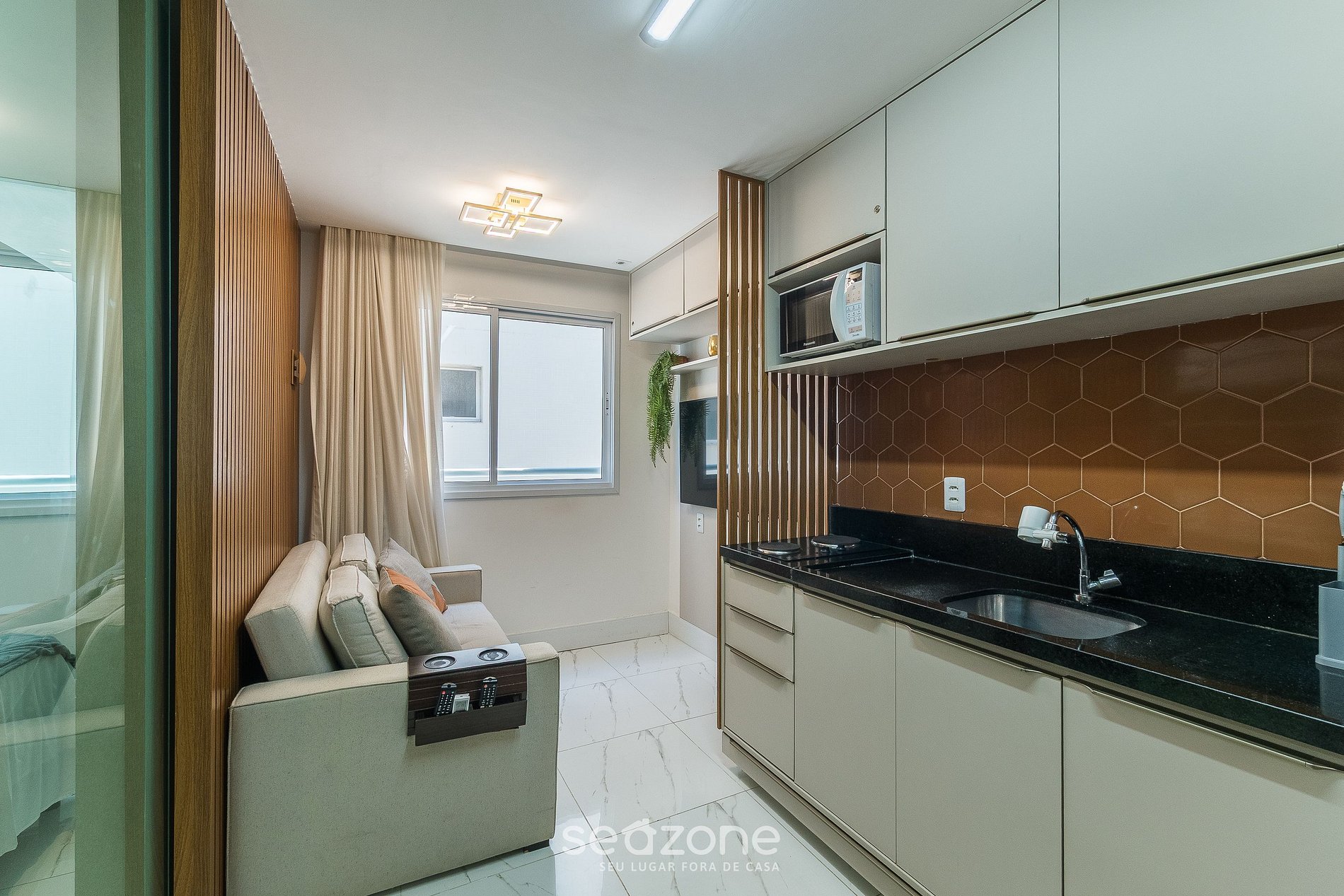 El apartamento ofrece una suite climatizada, sala con sofá cama, Smart TV, cocina completa y un comedor integrado. La estructura incluye piscina, gimnasio y coworking para una estadía práctica y elegante. A solo 100 m de la playa y rodeado de restaurantes, mercados y servicios de la zona.