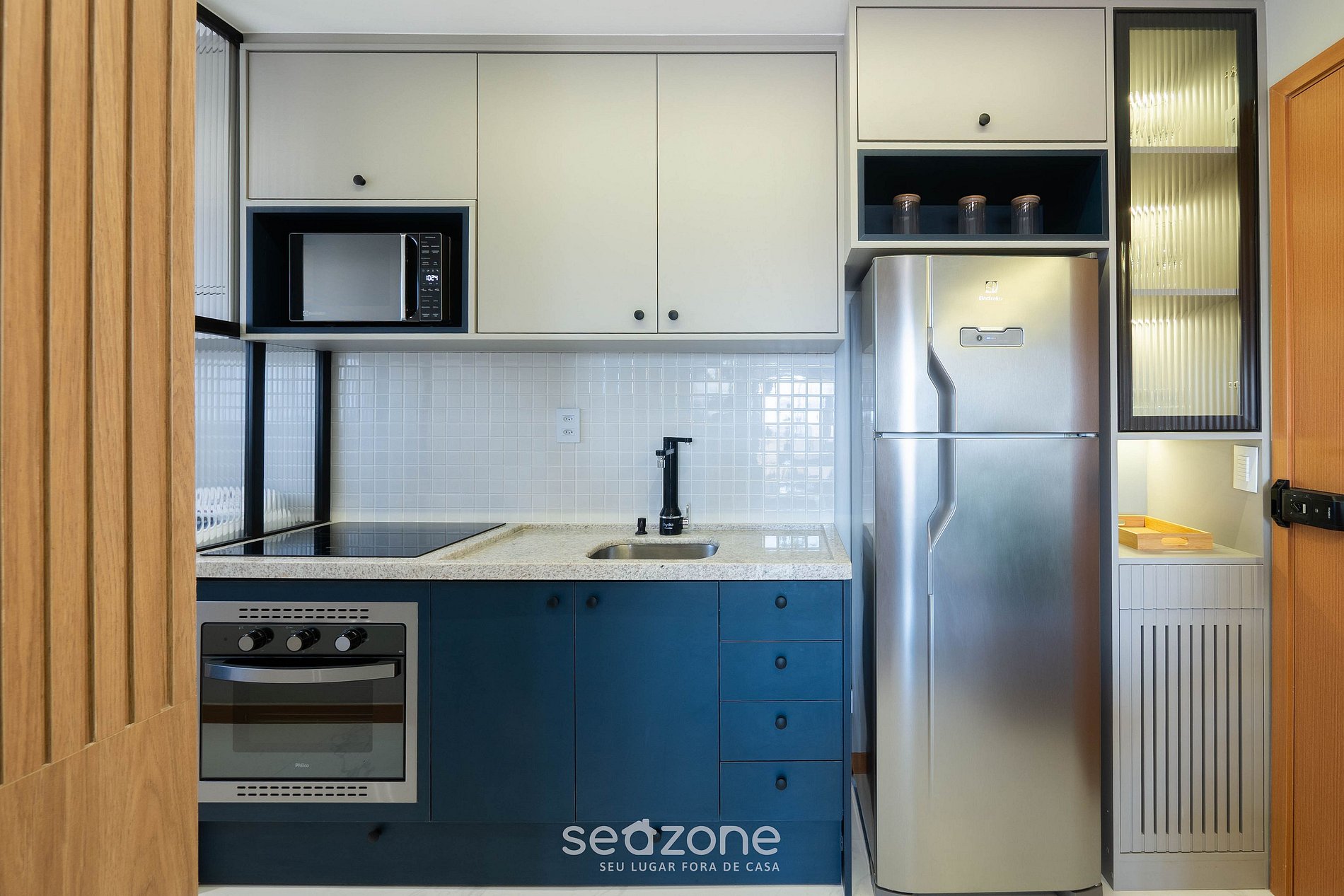 - Cocina completa con refrigerador, estufa de inducción, horno eléctrico, microondas, sandwichera, licuadora, cafetera eléctrica, hervidor eléctrico, copas de vino, sartenes, vajilla y utensilios;