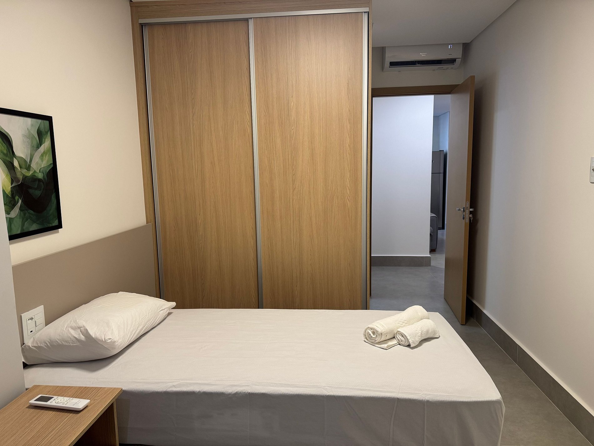 - 1 suite con cama individual, armario y aire acondicionado;