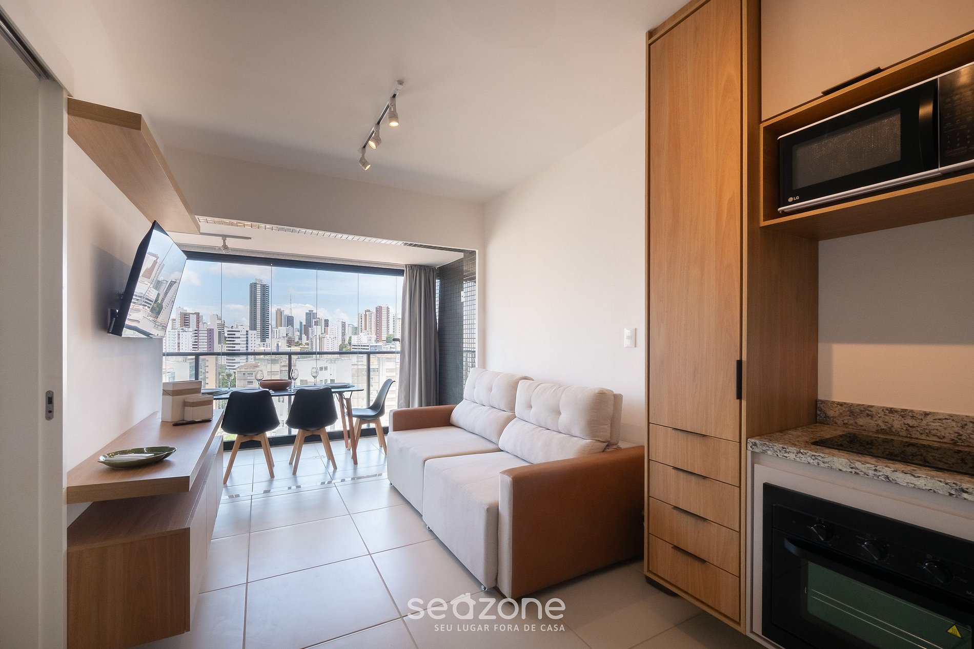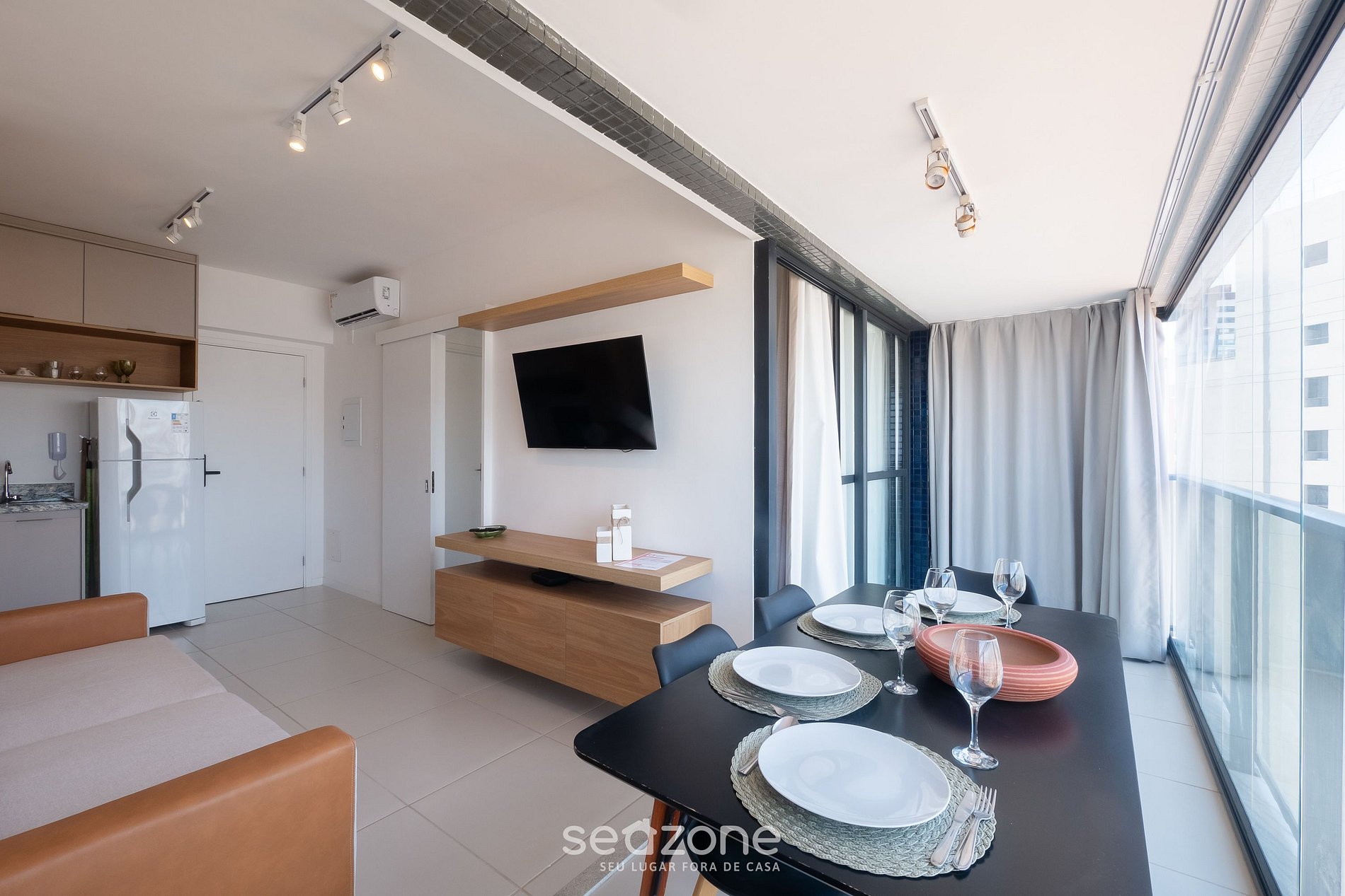 Este apartamento es la combinación perfecta de confort y ubicación. Totalmente climatizado, cuenta con una suite bien equipada, sala con sofá y smart TV, además de una cocina completa. El balcón ofrece una vista espectacular de la ciudad, con vista parcial del mar, y el atardecer hace la experiencia aún más encantadora. El condominio tiene piscina, gimnasio y área gourmet.