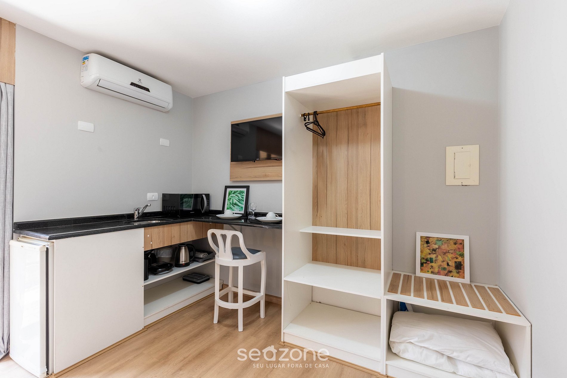 - Ropa de cama y baño de calidad hotelera (ropa de cama y toallas extras tienen un costo adicional por parte de Seazone).
