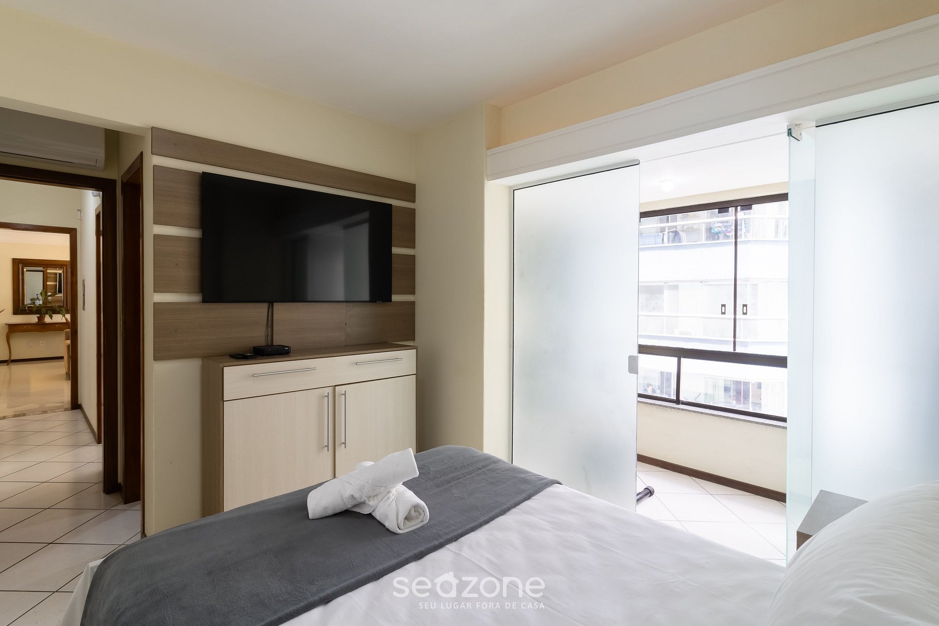 Este apartamento ofrece 3 habitaciones climatizadas, una de ellas con baño en suite, sala con sofá, Smart TV y aire acondicionado, además de una cocina completa. También tiene una encantadora vista lateral al mar. A pocos pasos de la Playa Central y la Avenida Atlántica, estarás rodeado de la mejor infraestructura de Balneário Camboriú, con restaurantes, tiendas y entretenimiento.