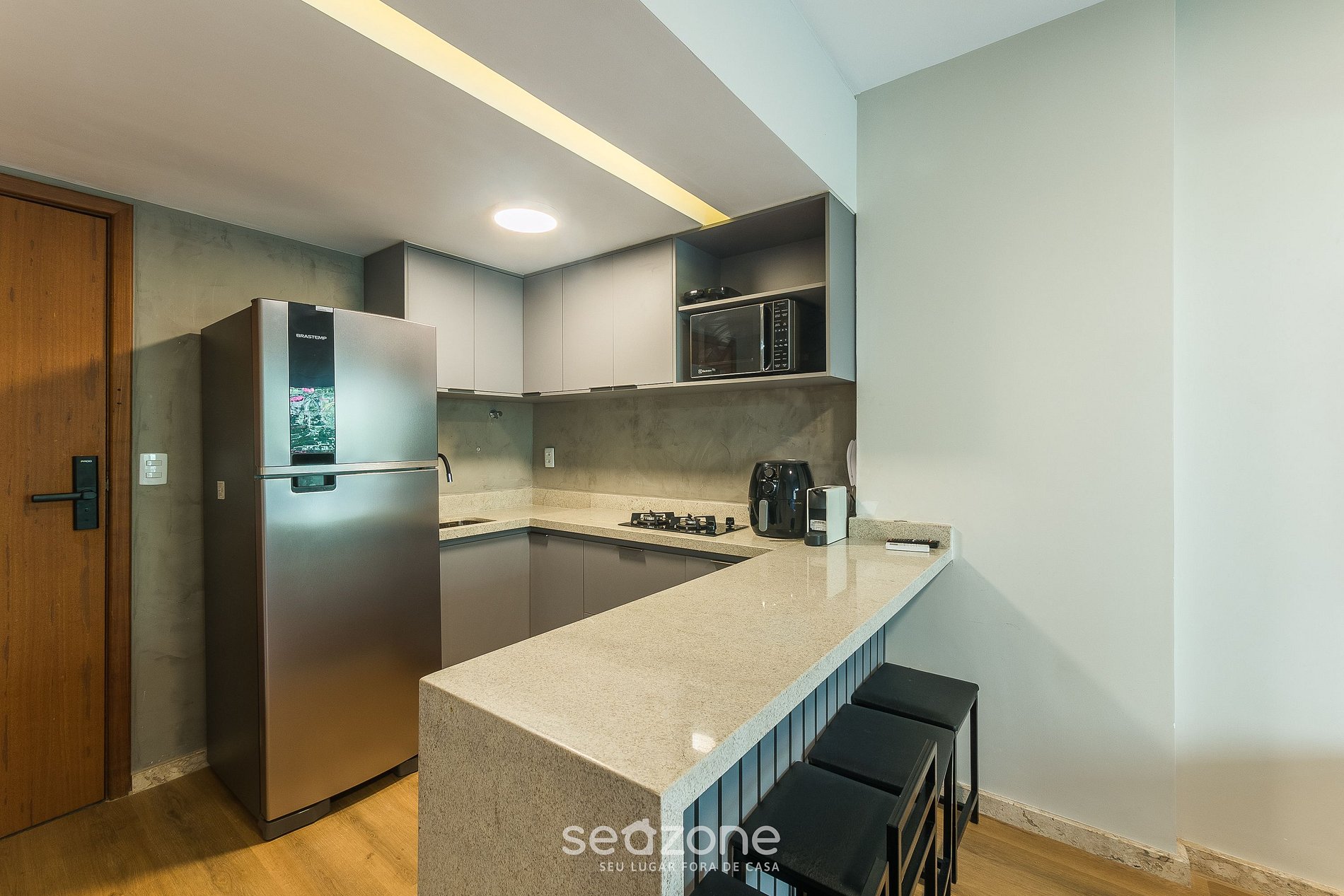 Apartamento bien distribuido en Barra, a solo 150 m de la playa. Cuenta con suite con cama queen y climatización, sala de estar con sofá cama y Smart TV, cocina completa, barra para comidas y baño. El balcón amueblado amplía el confort. El edificio ofrece piscina, gimnasio, sauna, espacio de coworking y garaje cubierto. Cerca de mercados, panaderías, restaurantes y puntos culturales.
