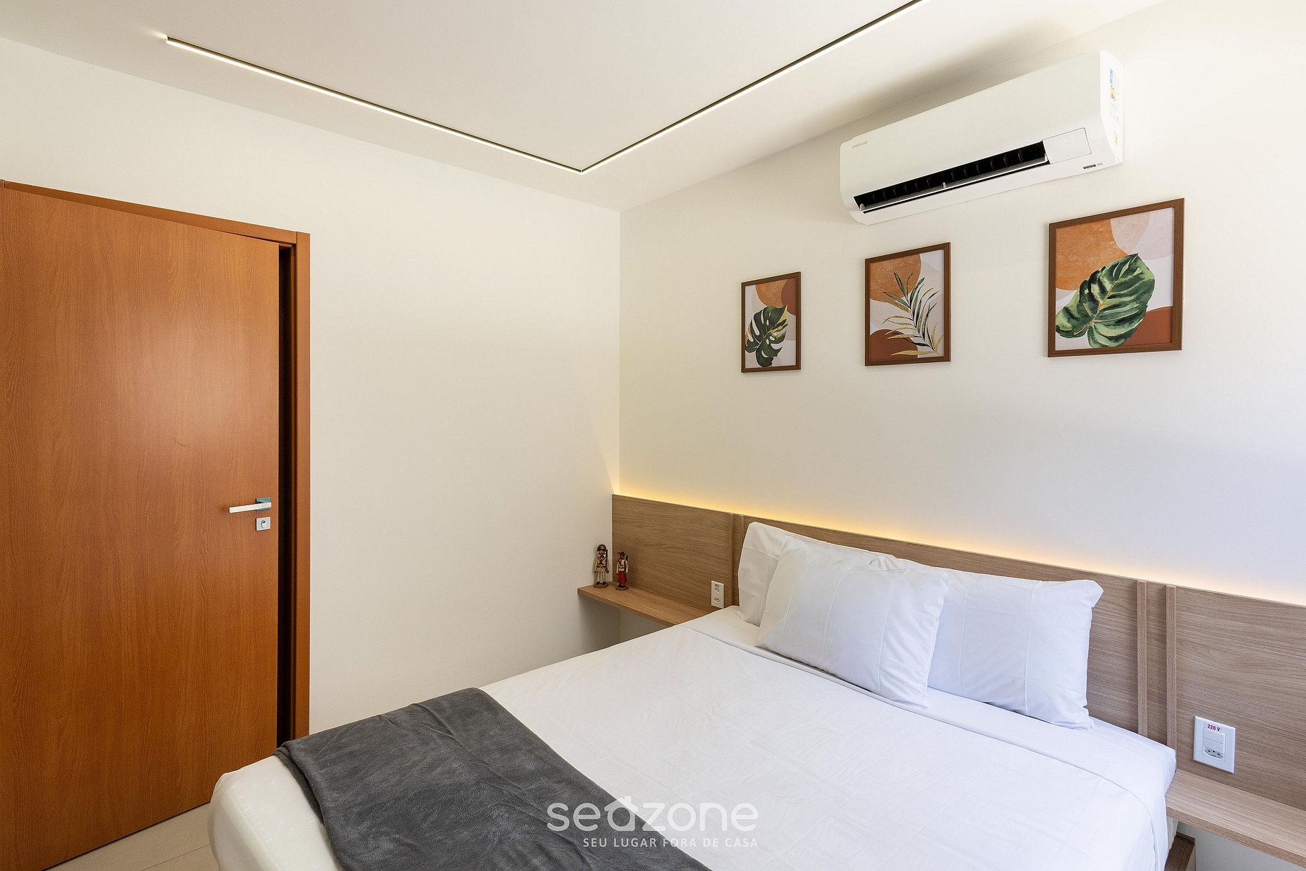 - 1 Suite con cama queen, armario, Smart TV y aire acondicionado;