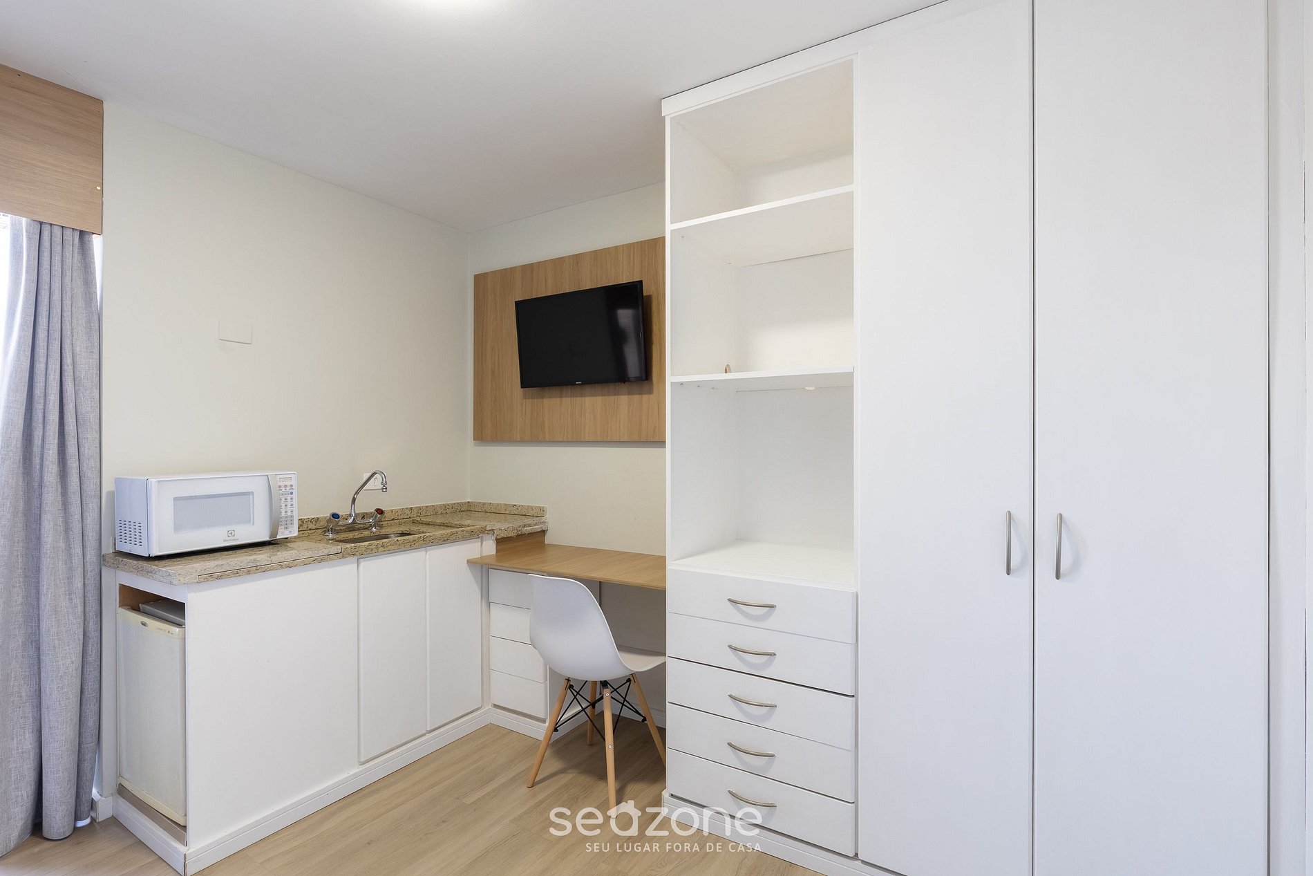 Este elegante estudio en Upper Residence ofrece lo mejor de Curitiba: confort, sofisticación y una vista panorámica de la ciudad. Equipado con cama queen, TV, aire acondicionado, cocina compacta y espacio para trabajar. Disfruta de un ambiente moderno, ubicado cerca del Jardín Botánico y con fácil acceso a restaurantes y tiendas. Ven a vivir esta experiencia exclusiva.