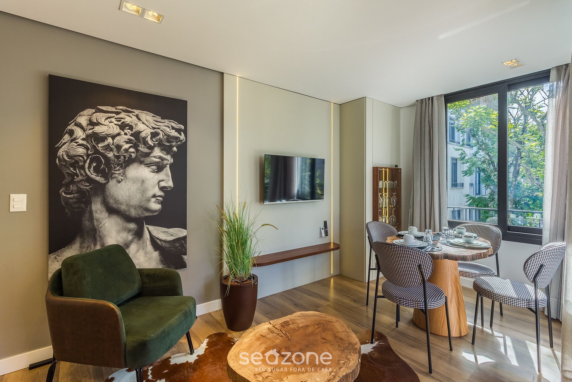 - Sala de estar con sofá cama doble, aire acondicionado y Smart TV;