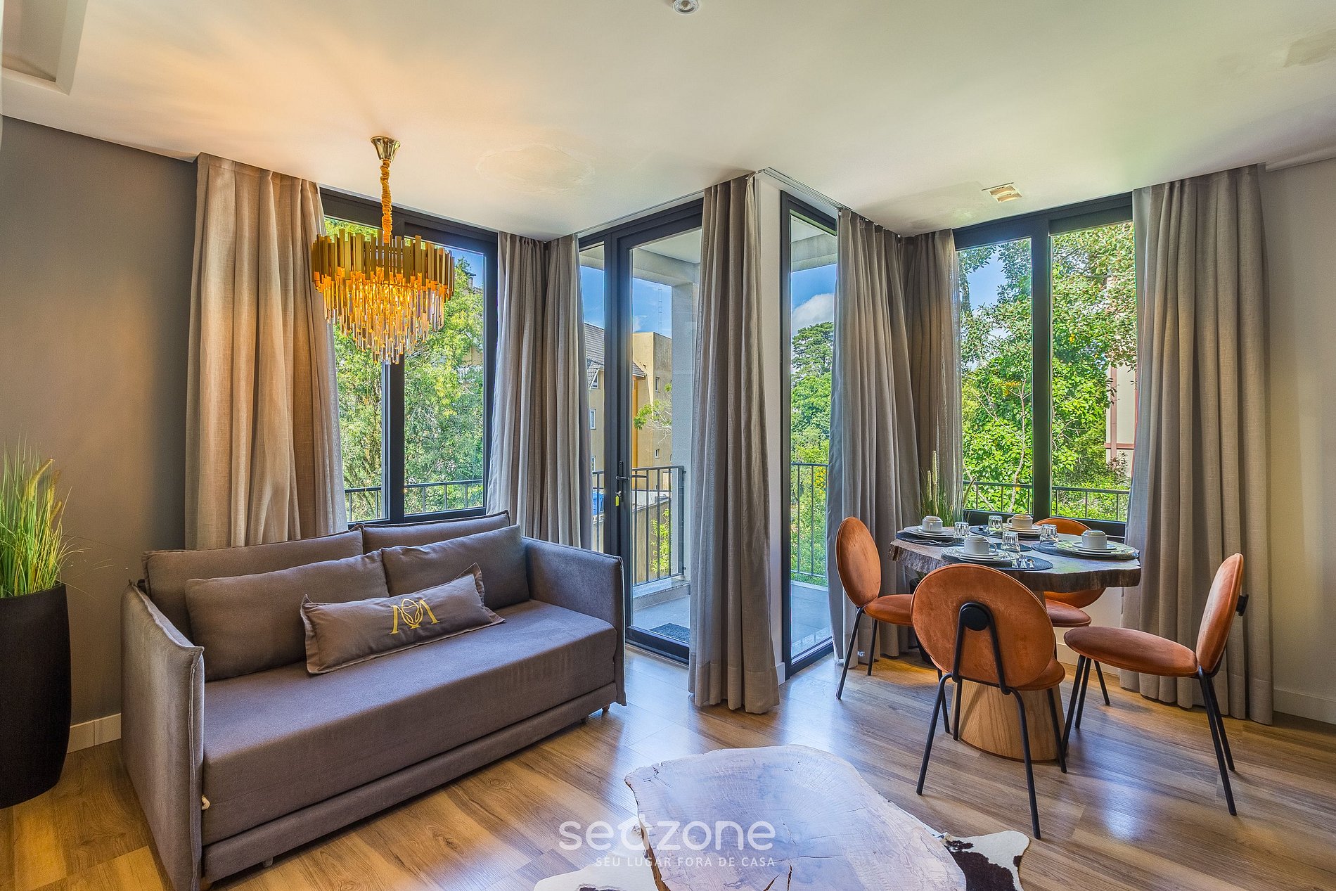 Nuestras acomodaciones combinan confort, ambiente moderno y una ubicación privilegiada que ofrece acceso fácil a todo lo que hace de Gramado un destino especial. Las áreas comunes disponen de espacio externo para caminatas y un parque infantil, creando una experiencia aún más completa. A pocos pasos, la Rua Coberta, la Praça Major Nicoletti, el Palácio dos Festivais, el Mini Mundo y excelentes opciones gastronómicas y culturales hacen su estadía práctica y envolvente.