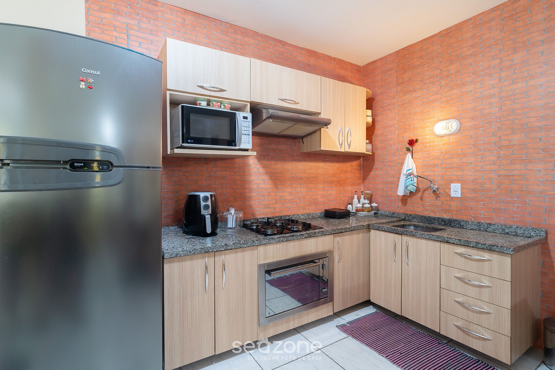 - Cocina totalmente equipada con refrigerador, estufa de gas, horno eléctrico, freidora de aire, microondas, sandwichera, kit de café (portafiltro, termo), hervidor eléctrico, licuadora, copas de vino, ollas, platos y utensilios;