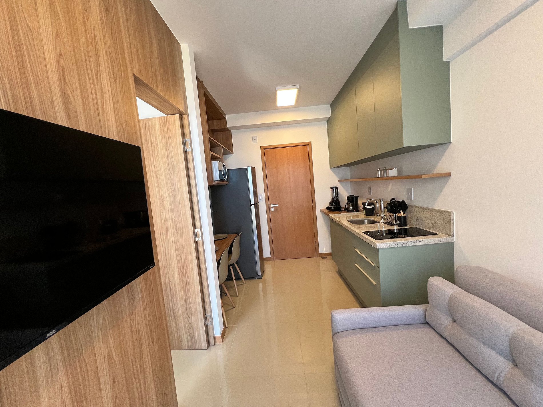 El apartamento ofrece una suite con aire acondicionado, cocina totalmente equipada y balcón con vistas al mar. El edificio también cuenta con piscina, terraza y gimnasio para tu bienestar, además de un espacio de coworking. Con una ubicación privilegiada cerca de supermercados, farmacias y excelentes restaurantes, tendrás todo lo que necesitas.