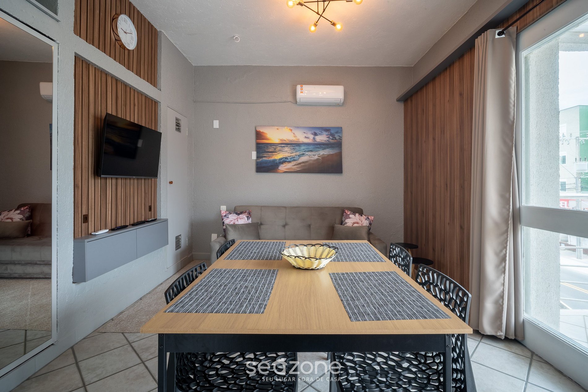 - Sala de estar con sofá cama doble, aire acondicionado y Smart TV;