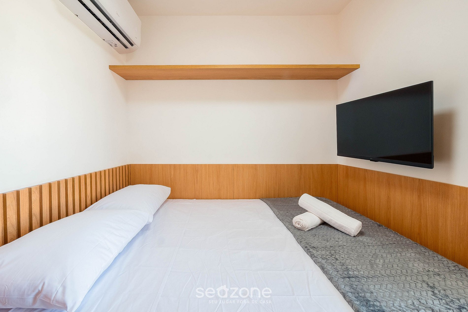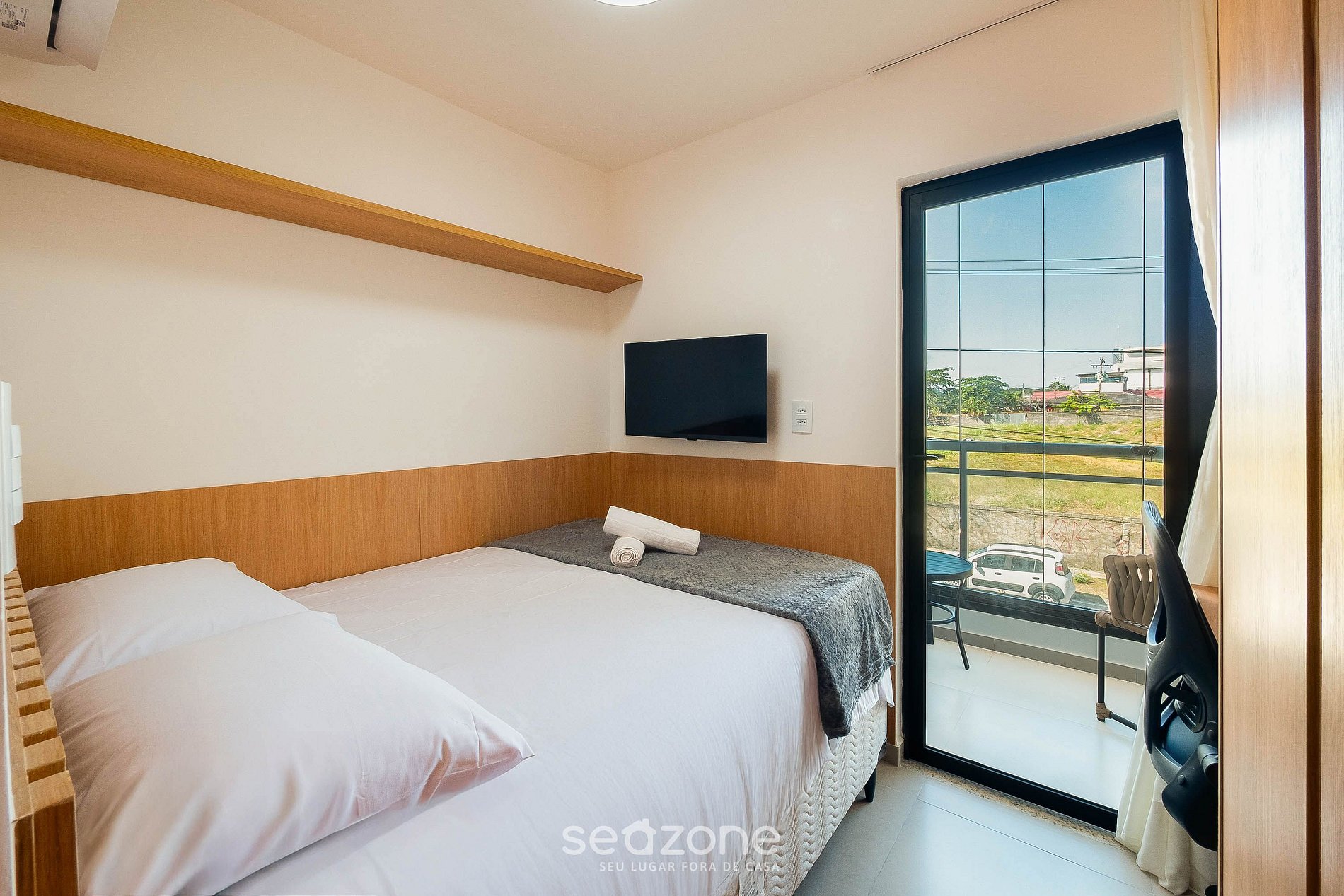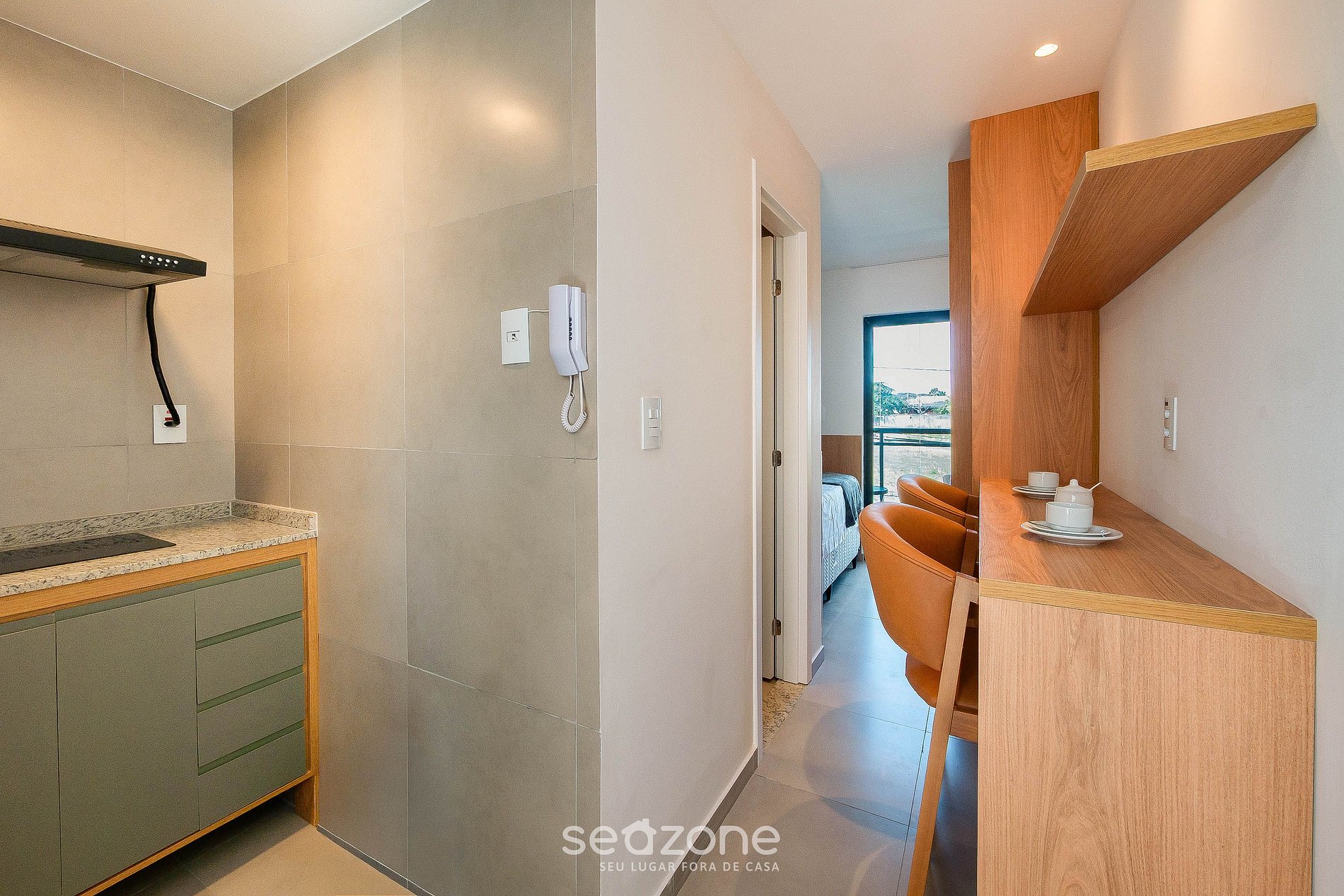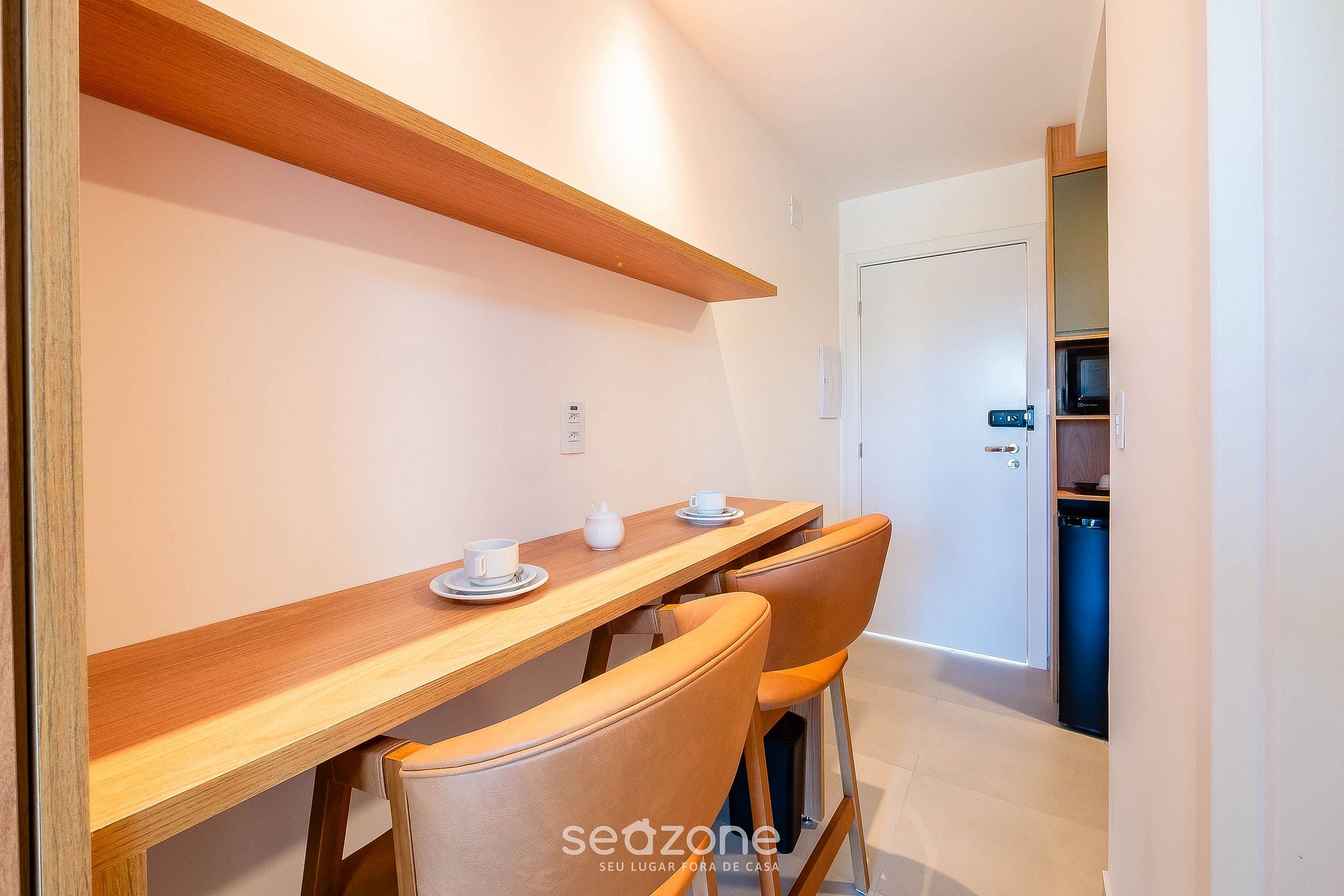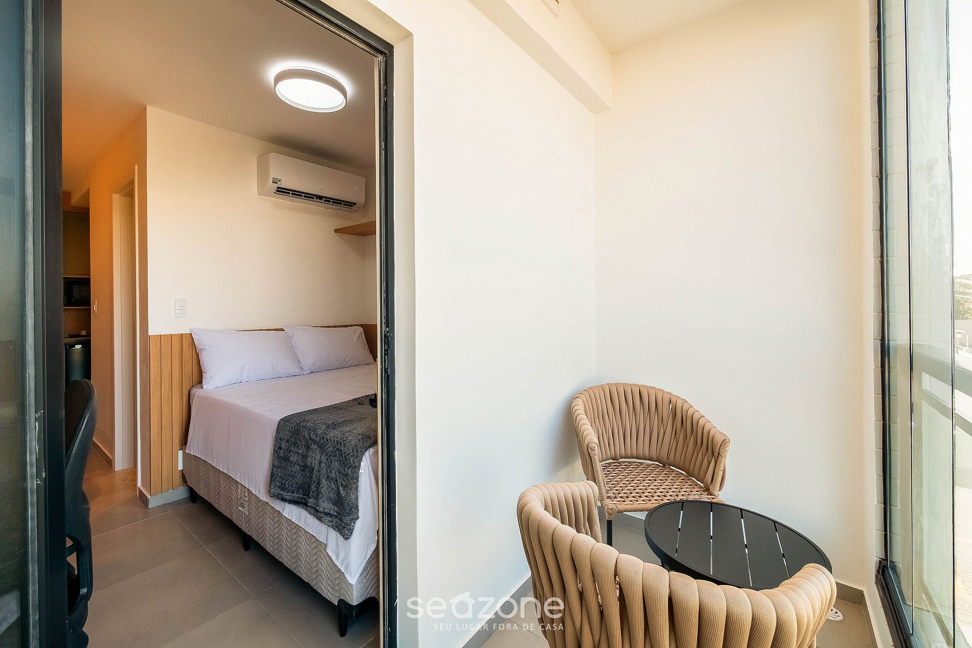 Este moderno estudio, a solo 280 m de la playa, ofrece todo lo que necesitas para una estadía increíble en Salvador. Con aire acondicionado, cama matrimonial, Smart TV y cocina completa, tendrás todo el confort y la privacidad. Disfruta del balcón con vista a la ciudad y relájate en las áreas comunes con salón de fiestas y piscina.