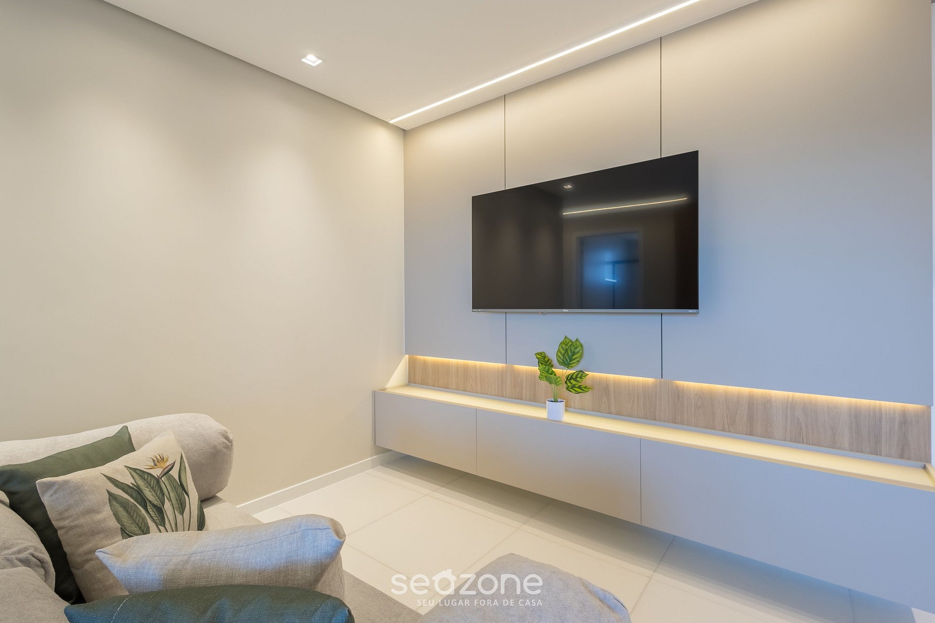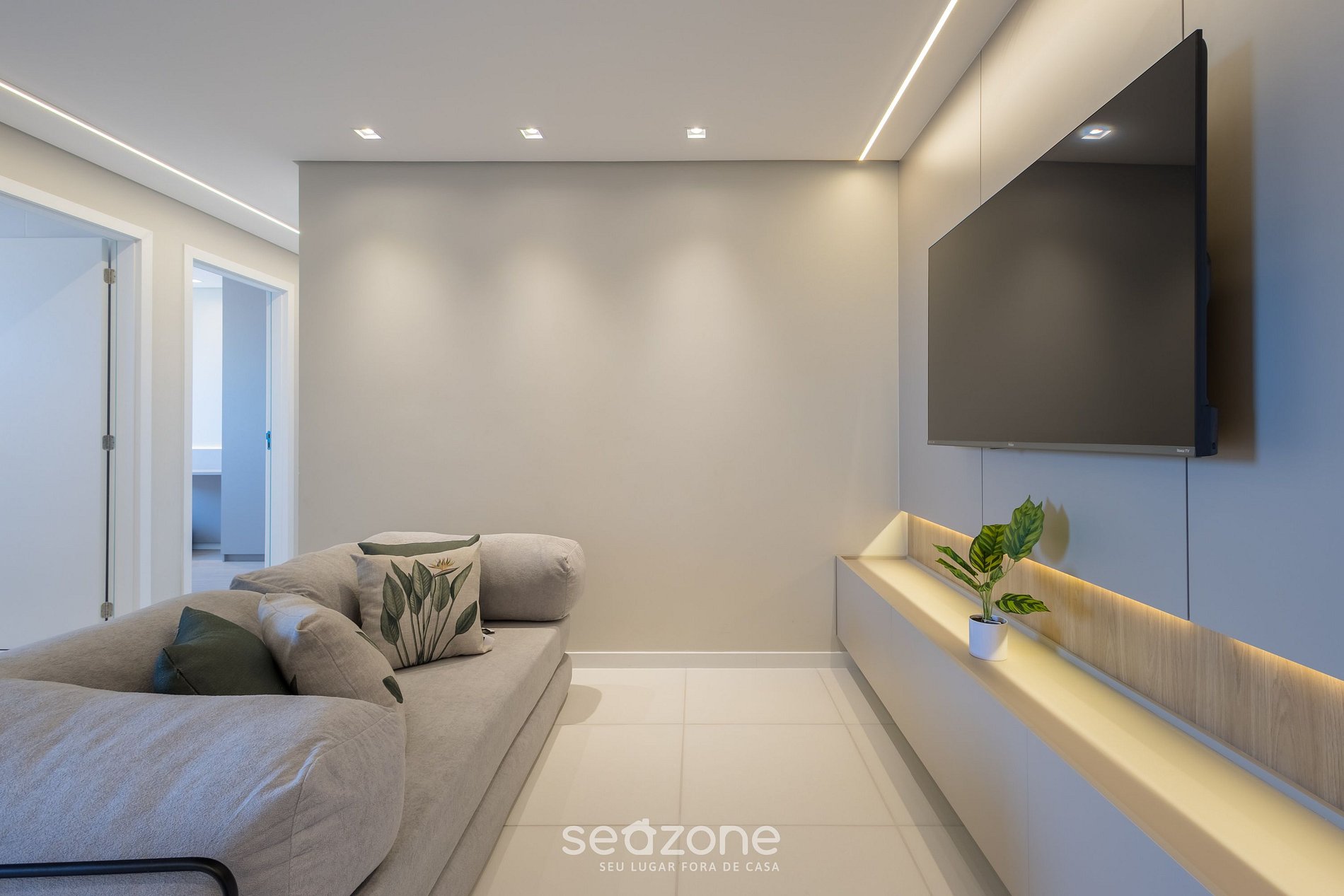 - Sala de estar con un sofá cama doble, aire acondicionado y Smart TV;