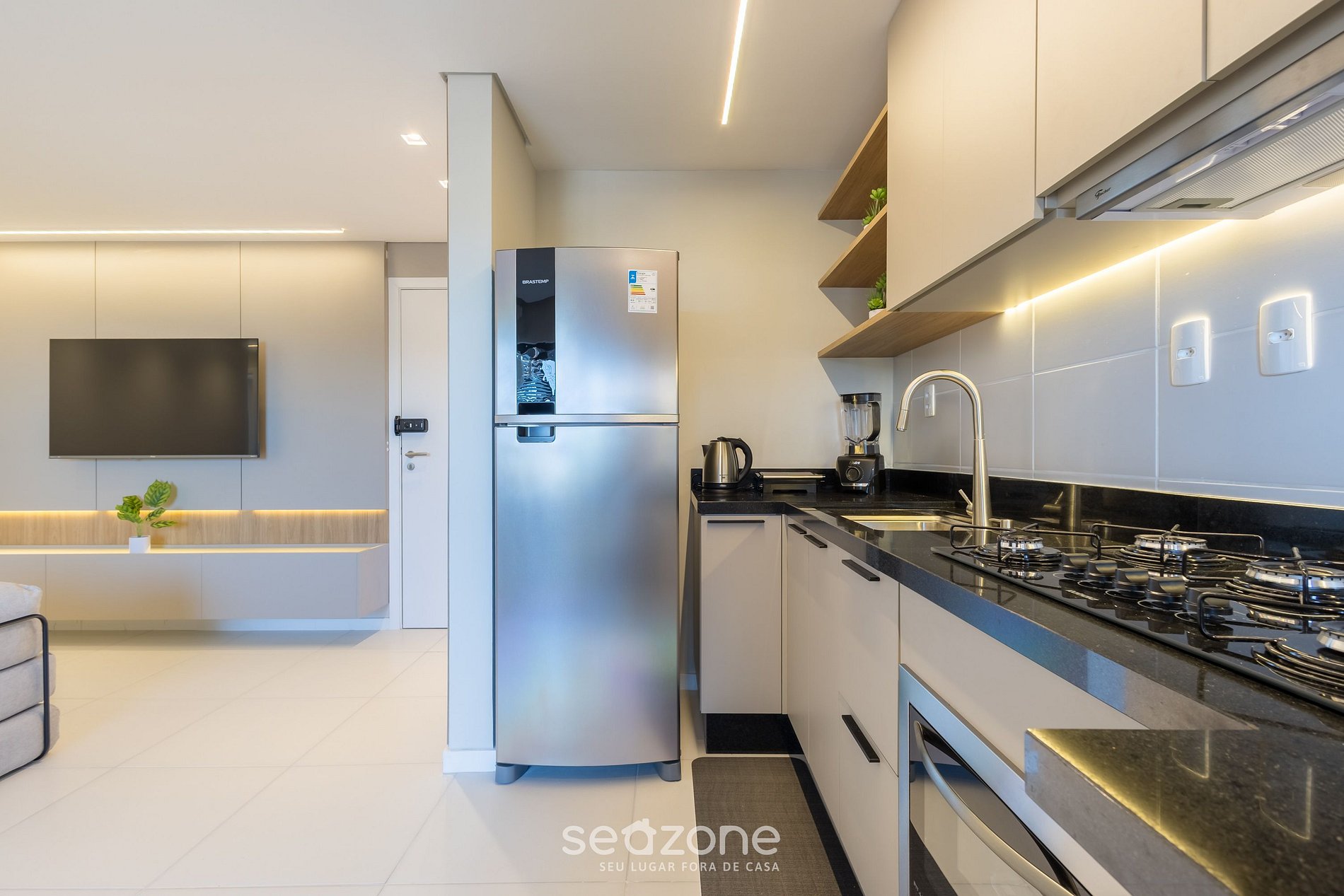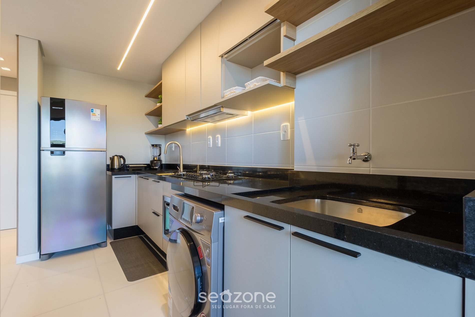 - Cocina totalmente equipada con refrigerador, placa de gas, horno eléctrico, sandwichera, cafetera eléctrica, hervidor eléctrico, licuadora, copas de vino, ollas, sartenes, platos y utensilios;