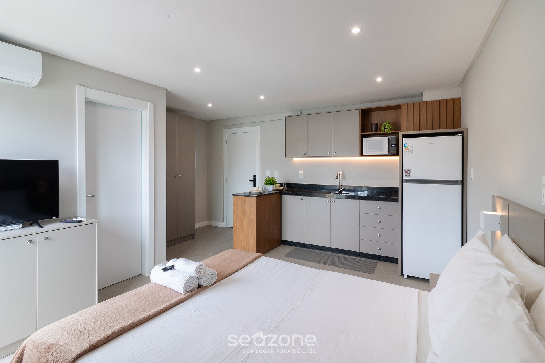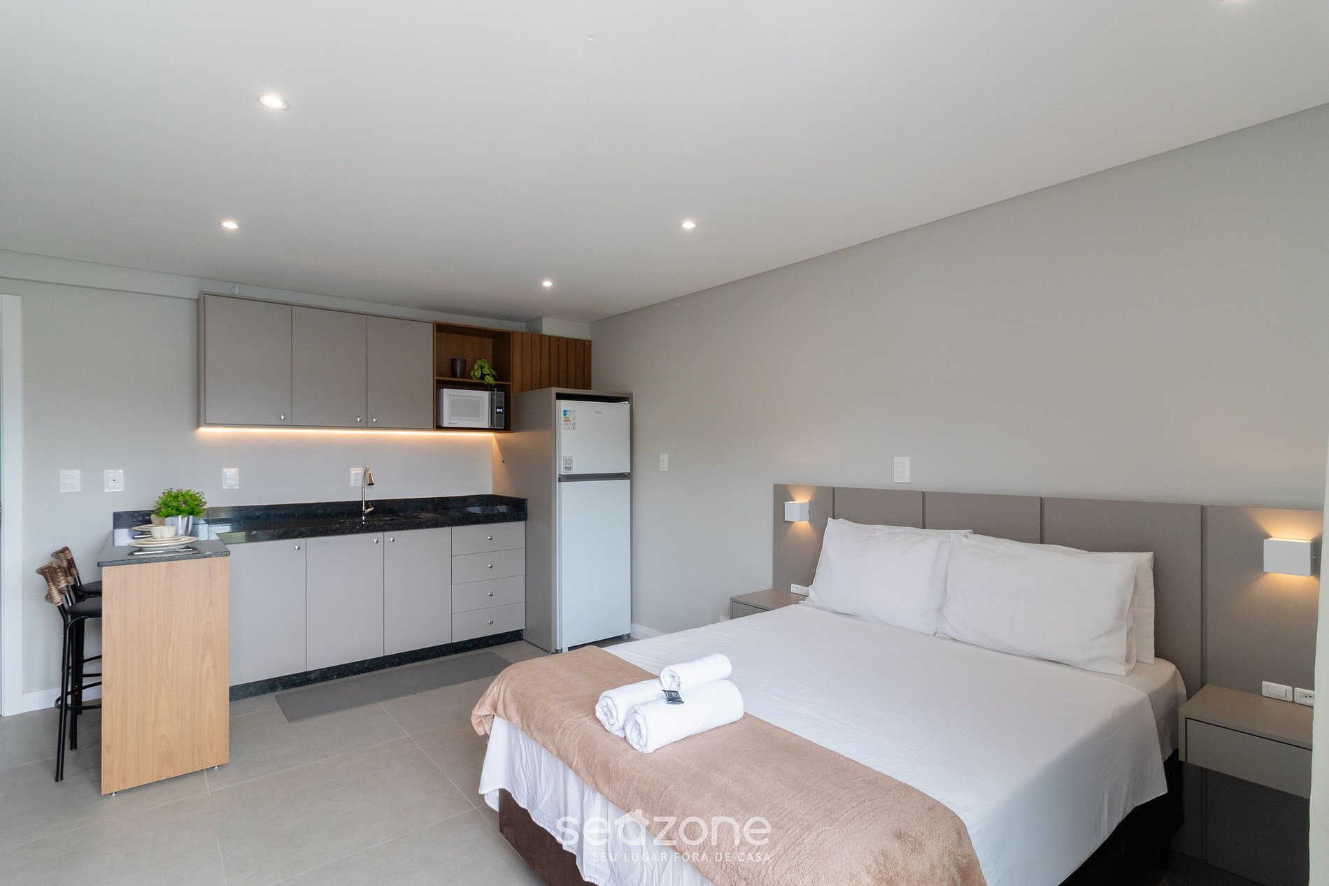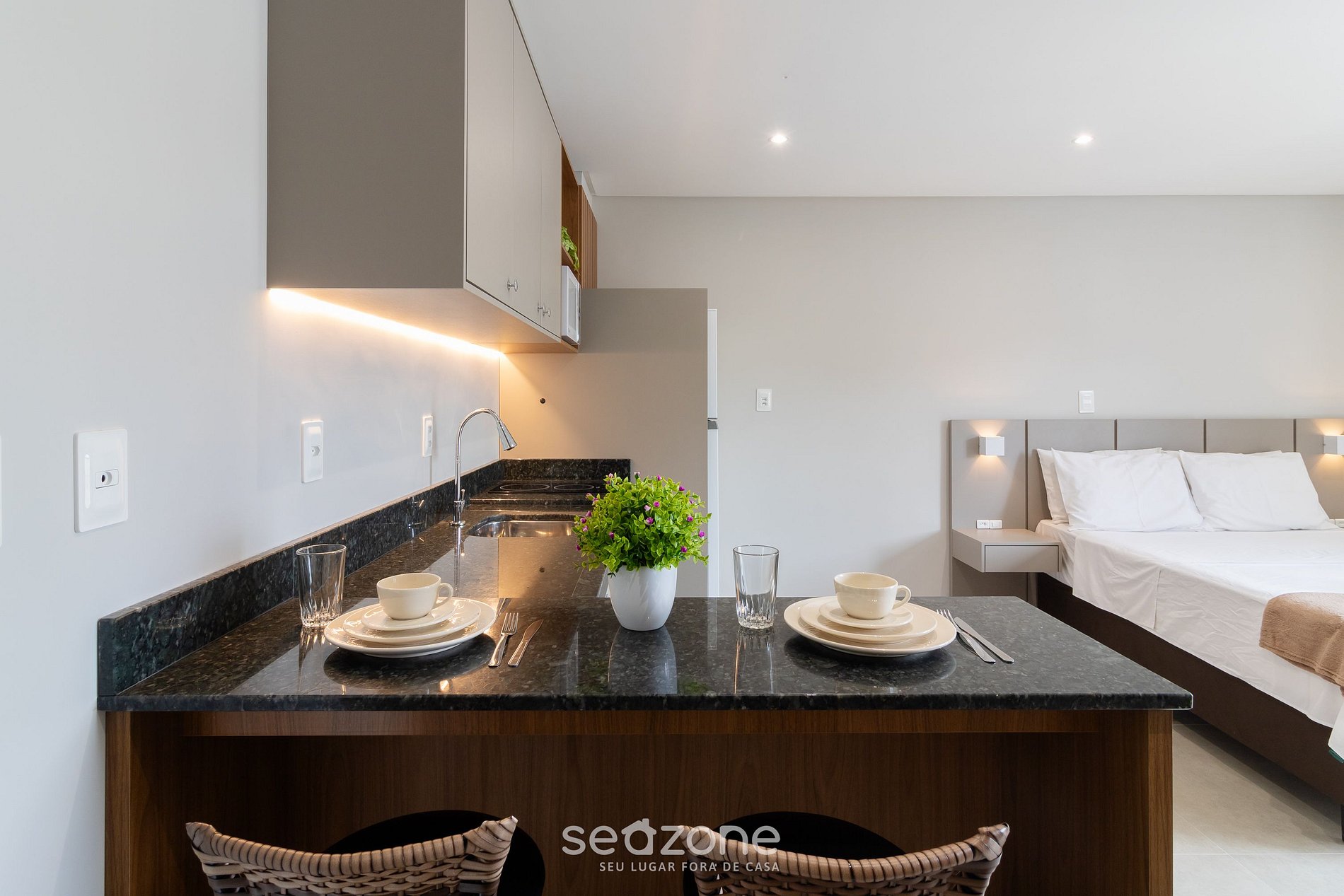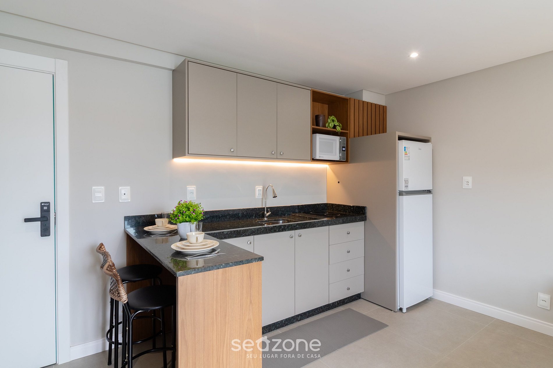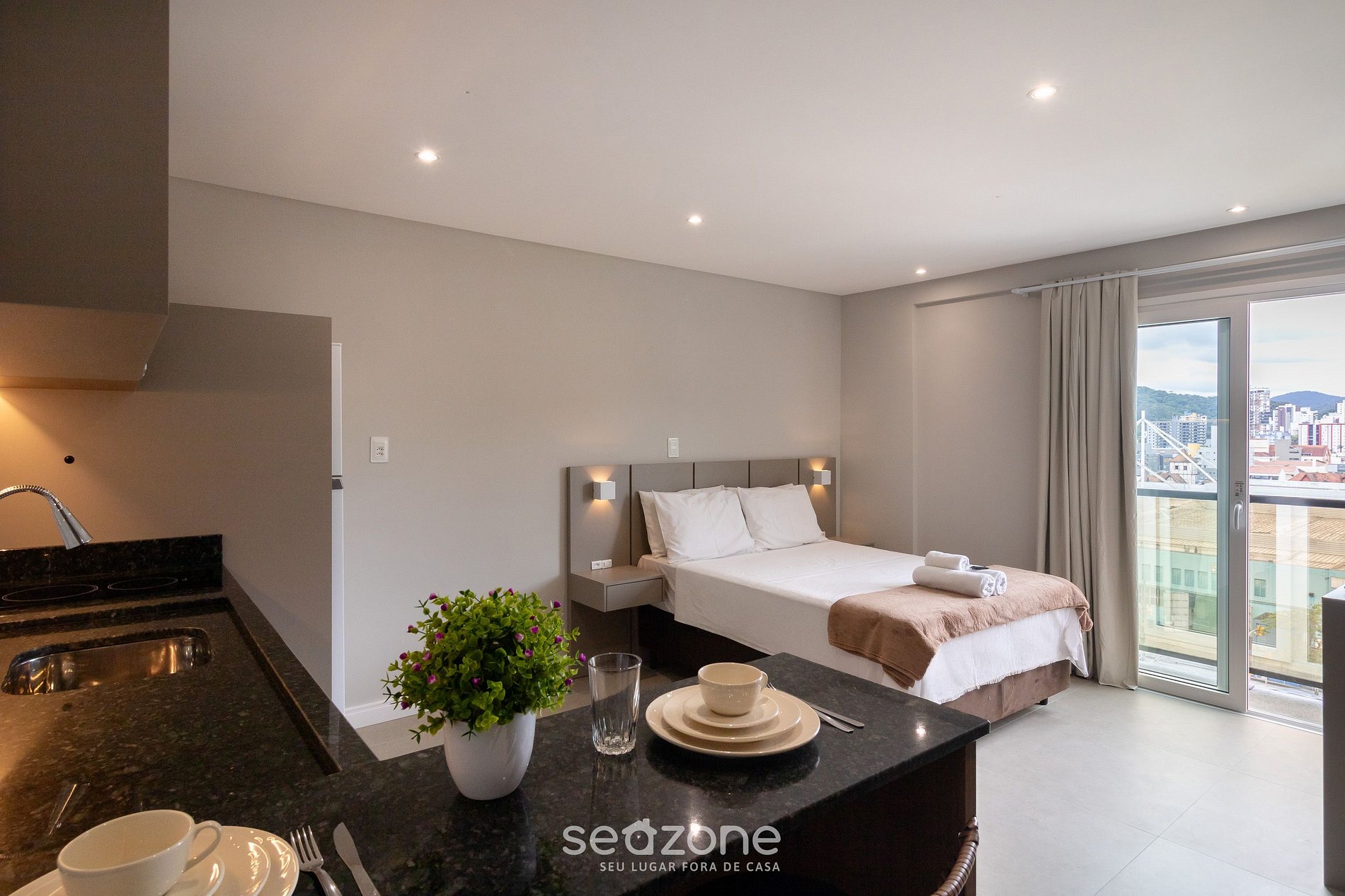 Con un diseño contemporáneo y una ubicación privilegiada, este estudio ofrece cama doble, Smart TV, aire acondicionado y cocina totalmente equipada. El balcón integrado con vista a la ciudad completa la experiencia. A solo 350 m de la Vila Germânica, estarás a pocos pasos de las mejores opciones gastronómicas y culturales de Blumenau.