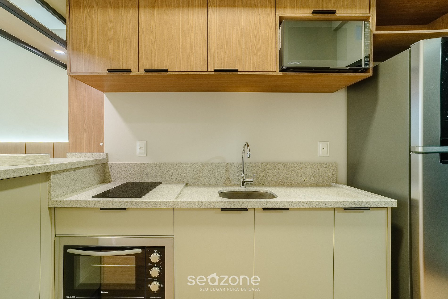 - Cocina totalmente equipada con refrigerador, placa de inducción, horno eléctrico, microondas, sandwichera, cafetera eléctrica, hervidor eléctrico, licuadora, copas de vino, ollas, sartenes, platos y utensilios;