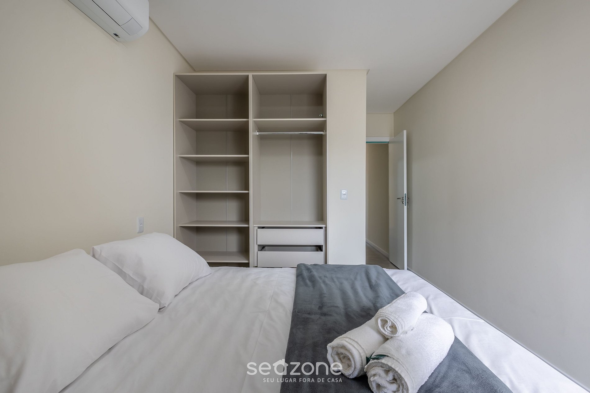 - 1 suite con cama queen, armario, aire acondicionado y balcón;