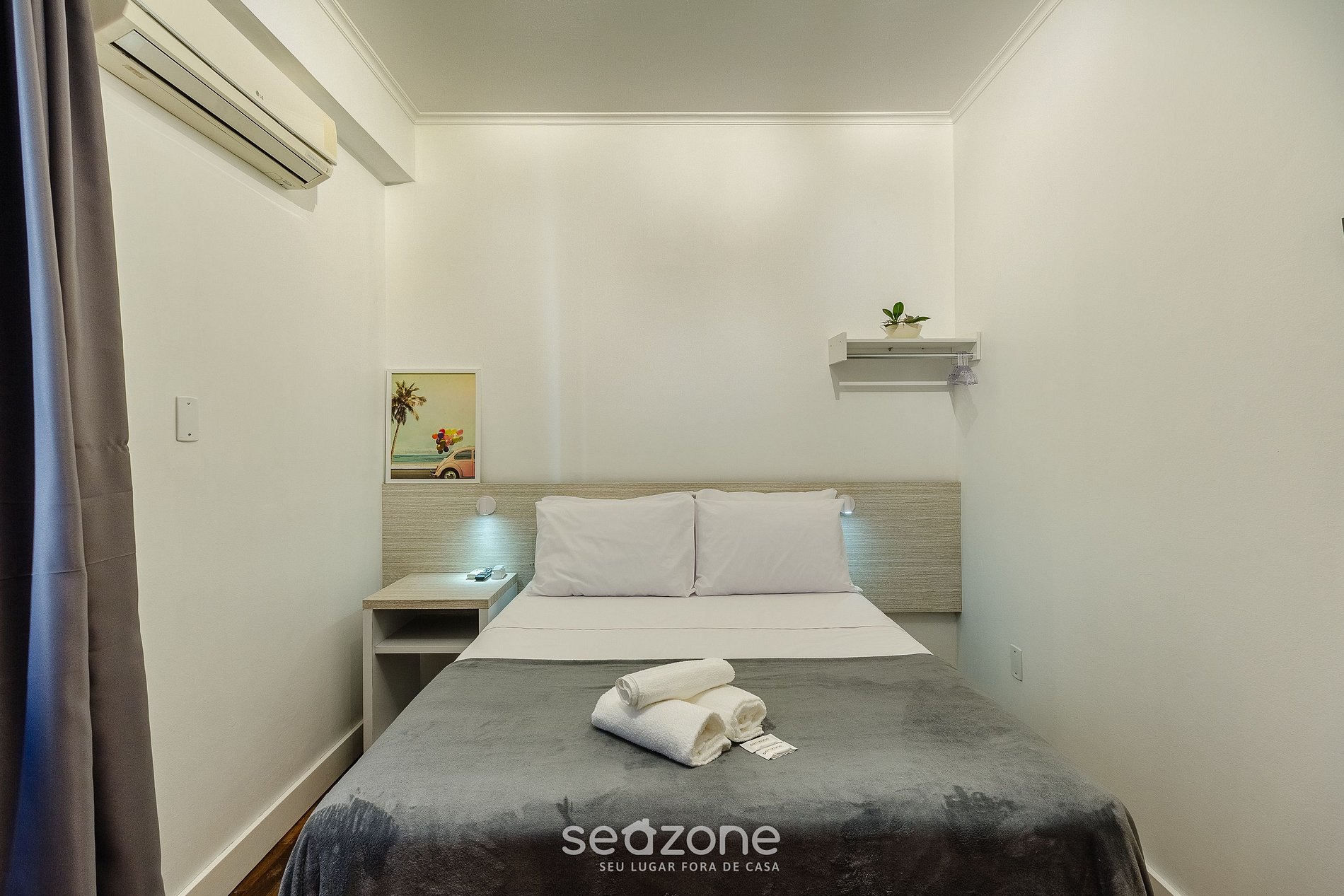 El estudio climatizado ofrece cama doble, Smart TV y cocina compacta con frigobar, microondas y cafetera. Las áreas comunes incluyen coworking, cocina compartida y salón de eventos. A pocos minutos del Mercado Público, la Casa de Cultura Mário Quintana y restaurantes tradicionales.