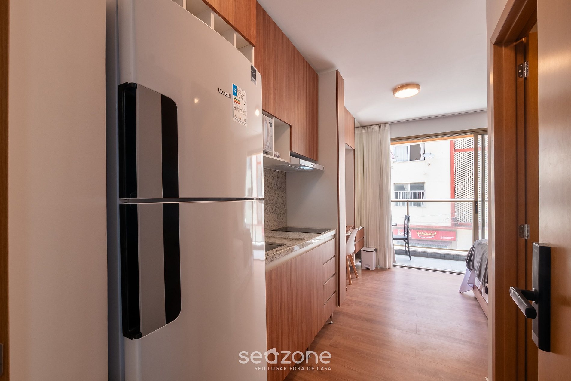 Este estudio moderno ofrece cama matrimonial, cama auxiliar, Smart TV, aire acondicionado y un balcón con una vista encantadora. Disfrute de las áreas comunes con piscina, parrilla y gimnasio. Ubicación privilegiada, cerca de los mejores restaurantes, mercados y puntos turísticos.