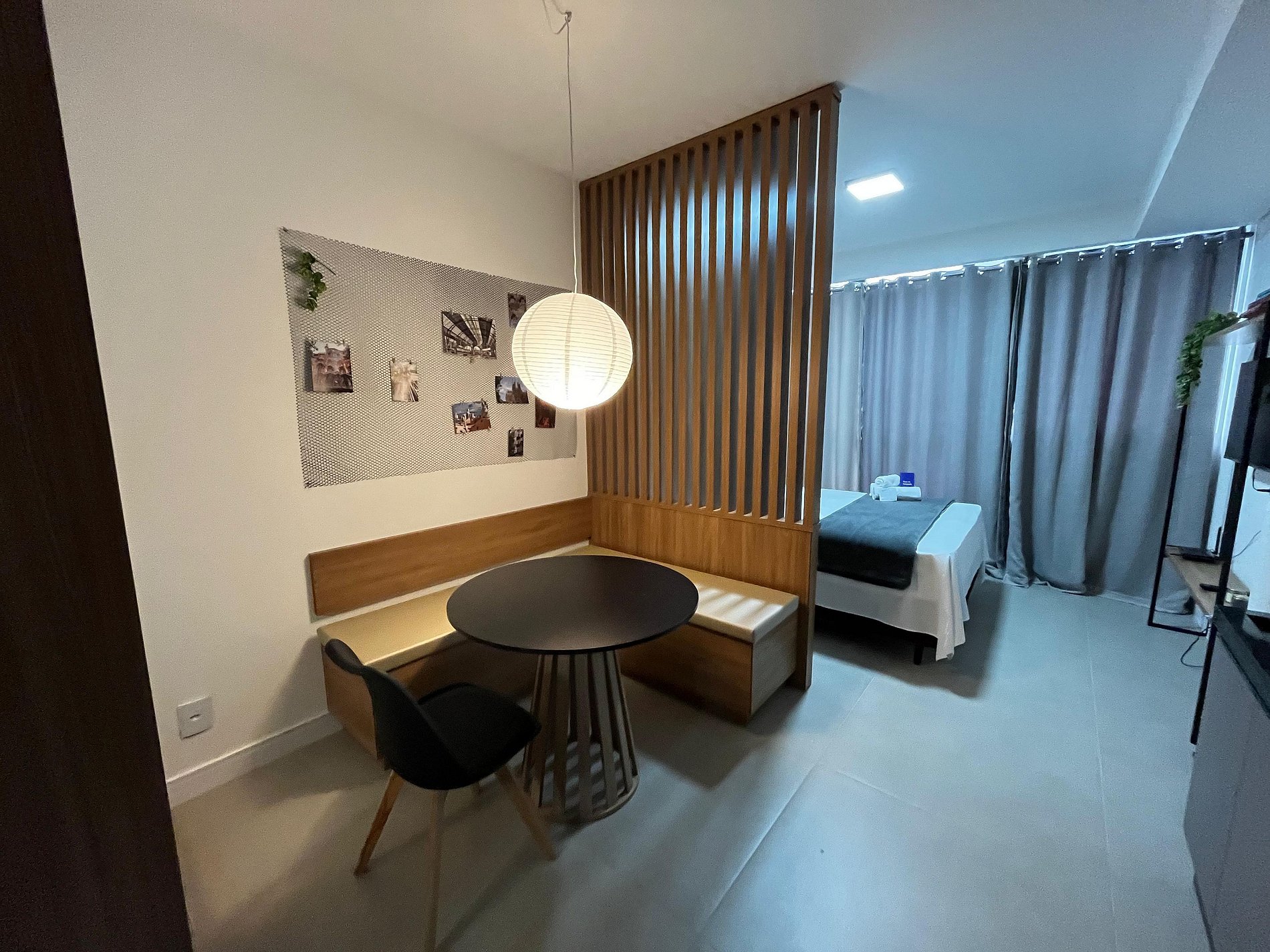 Si buscas comodidad, este estudio es la opción ideal. Con cama queen, Smart TV, aire acondicionado, wifi y cocina equipada, te ofrece todo lo necesario para tu estancia. Disfruta de la zona común con gimnasio, espacio zen y mucho más. Estratégicamente ubicado, a solo minutos de la UFSC, con fácil acceso a restaurantes, mercados y transporte. Disfruta de la comodidad de estar cerca de los mejores lugares de Florianópolis.