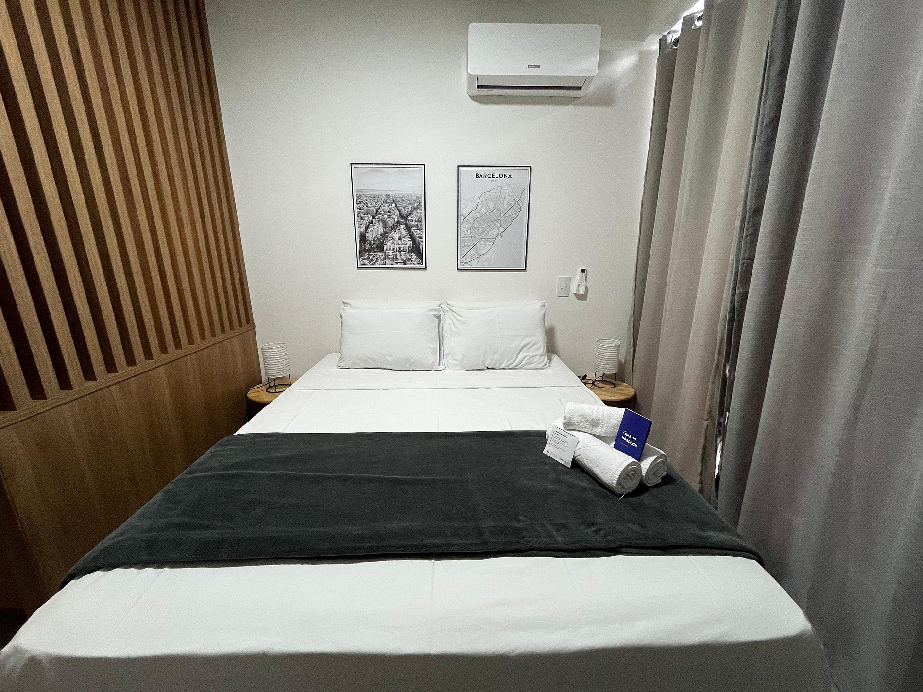 - 1 cama queen, Smart TV, armario y aire acondicionado;