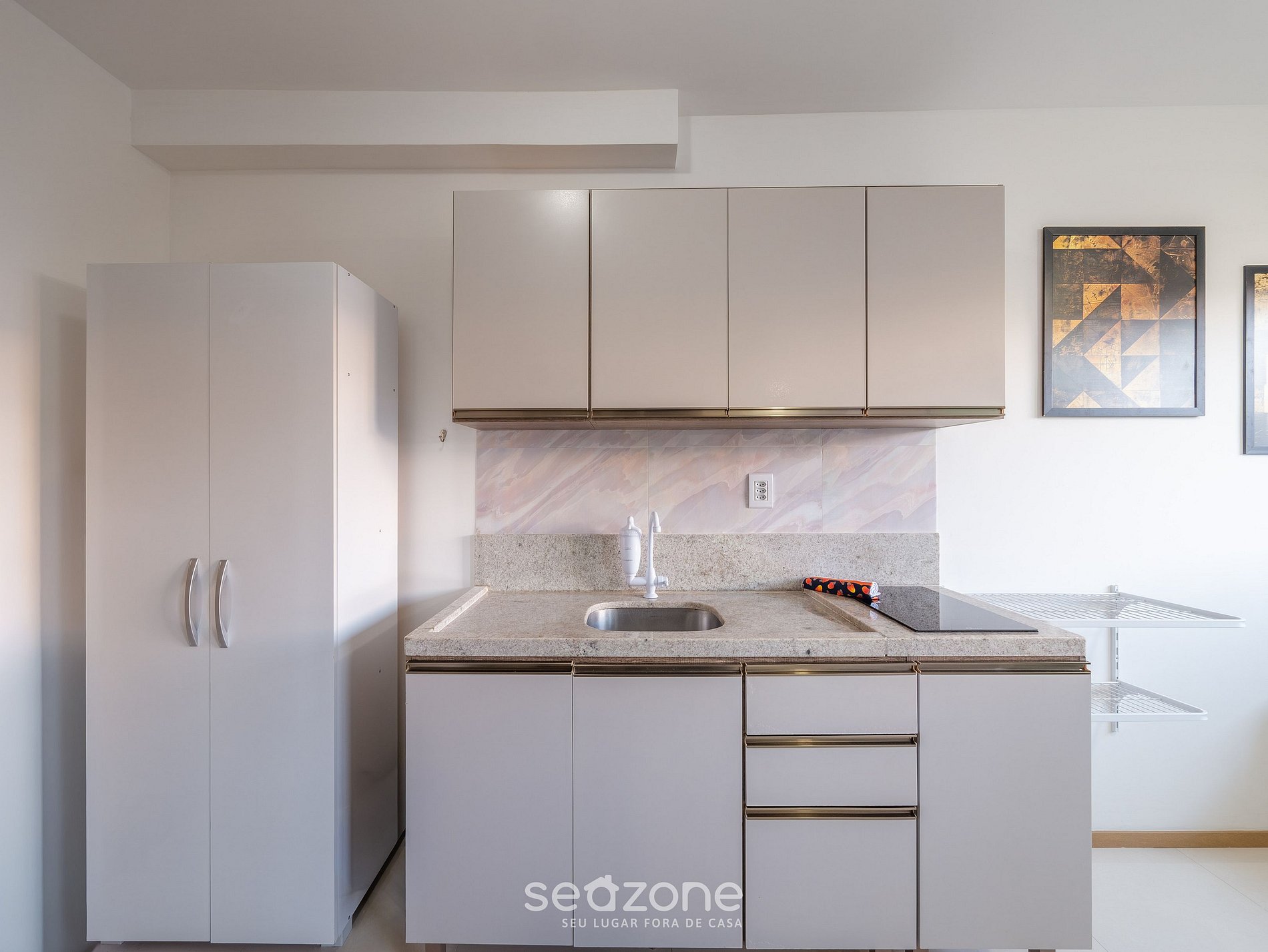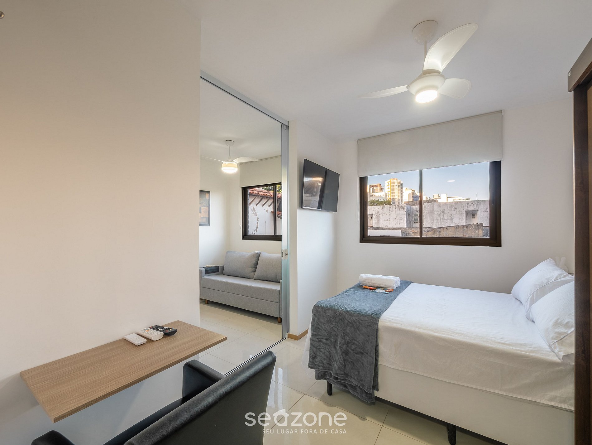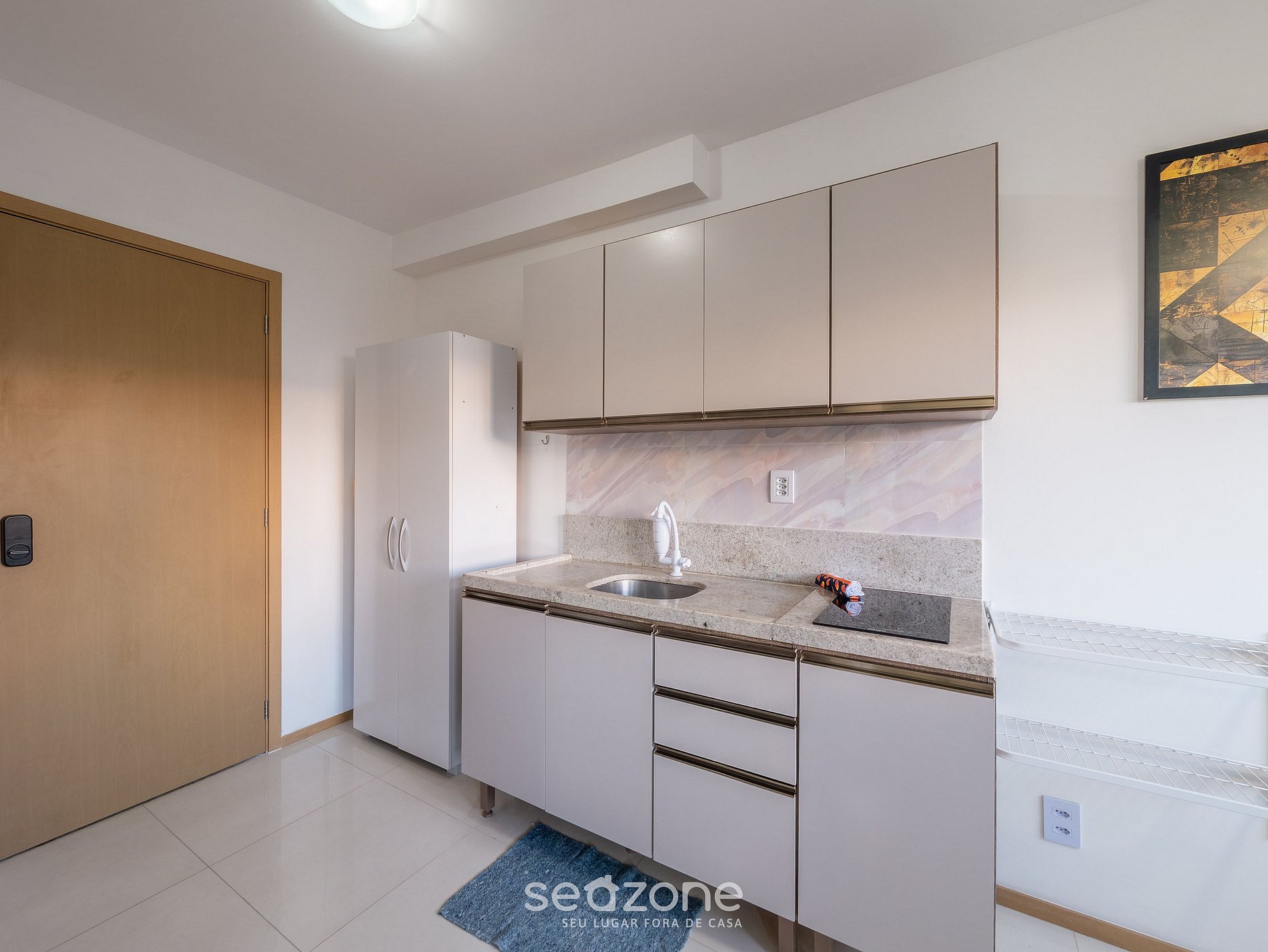 Apartamento bien distribuido, con suite climatizada equipada con cama doble y Smart TV, sala de estar con sofá y cocina completa. El área de comedor con barra y sillas realza la experiencia diaria. El edificio ofrece piscina, gimnasio, coworking, sala de reuniones otras comodidades. Ubicado a solo 500 m de la playa, rodeado de mercados, panaderías y restaurantes.