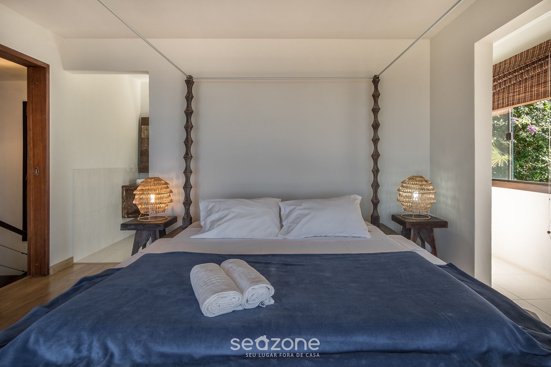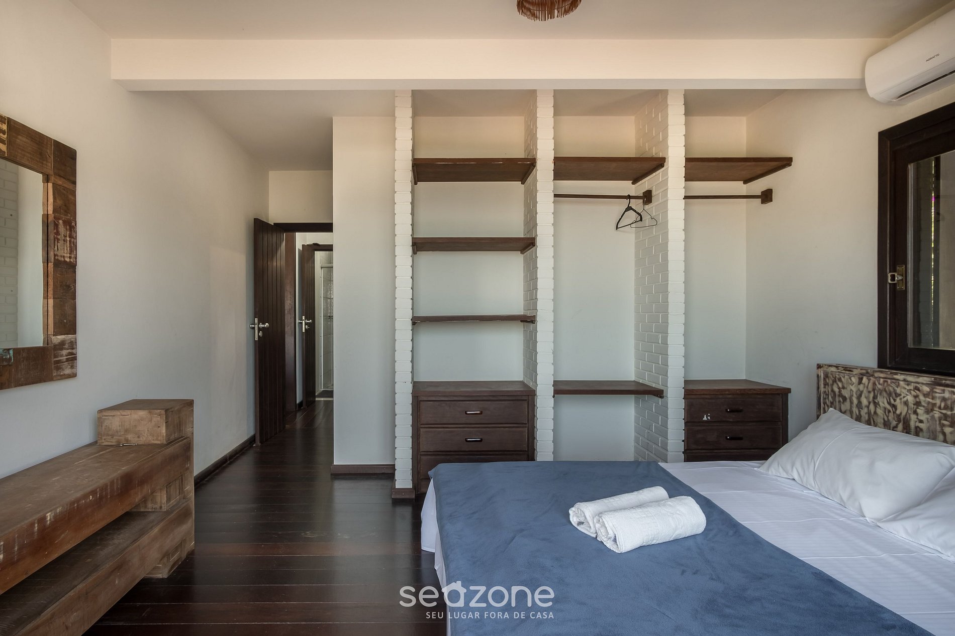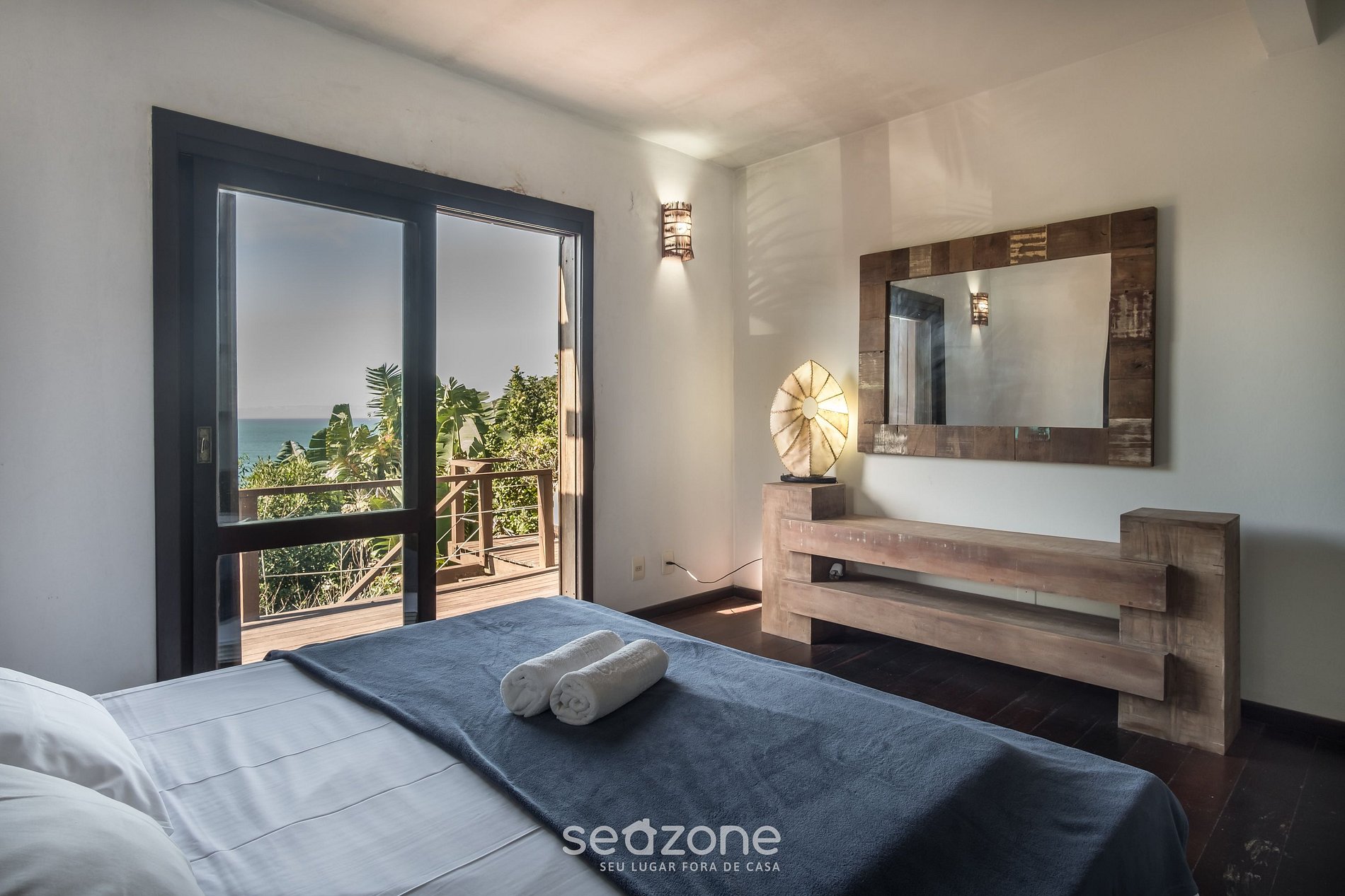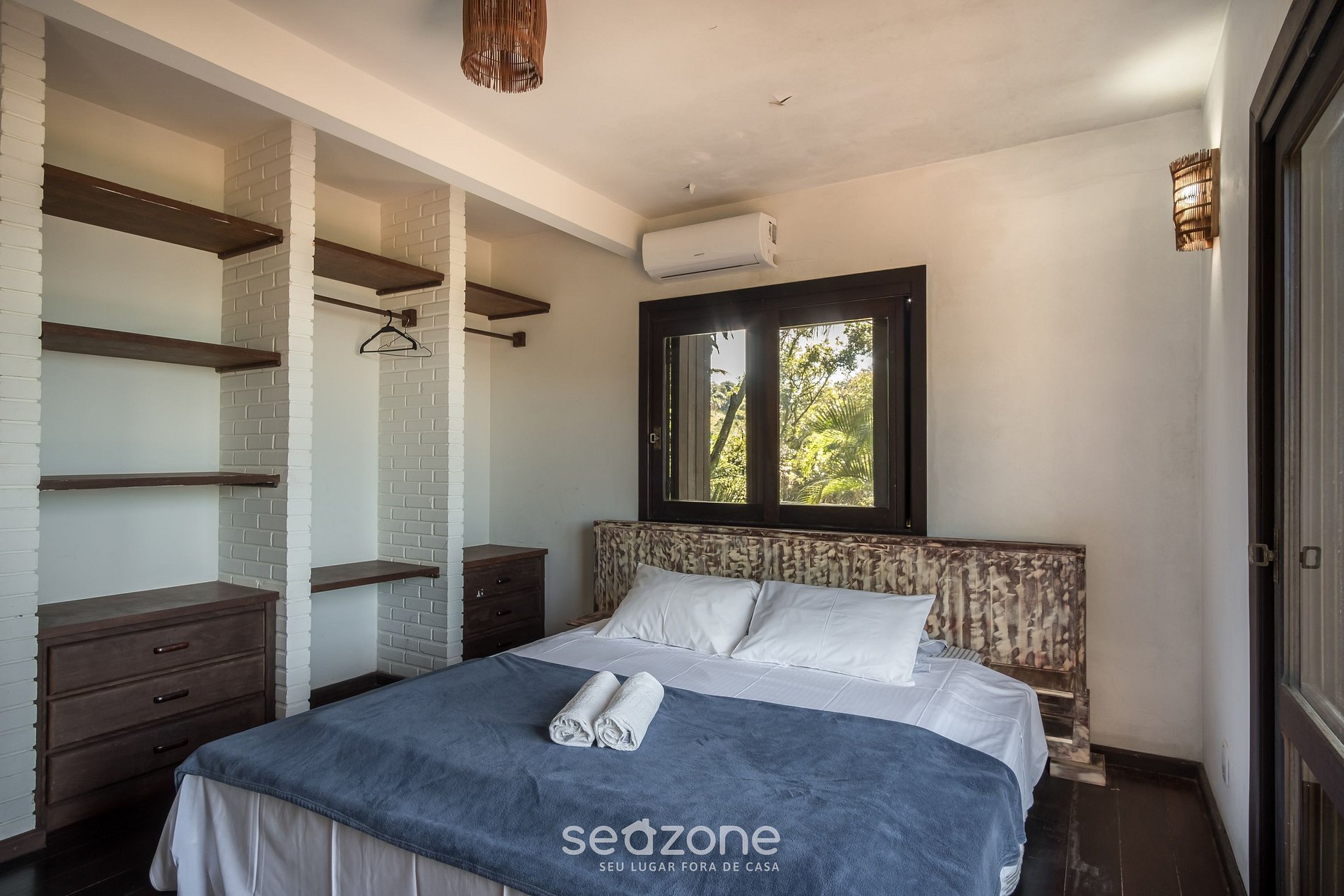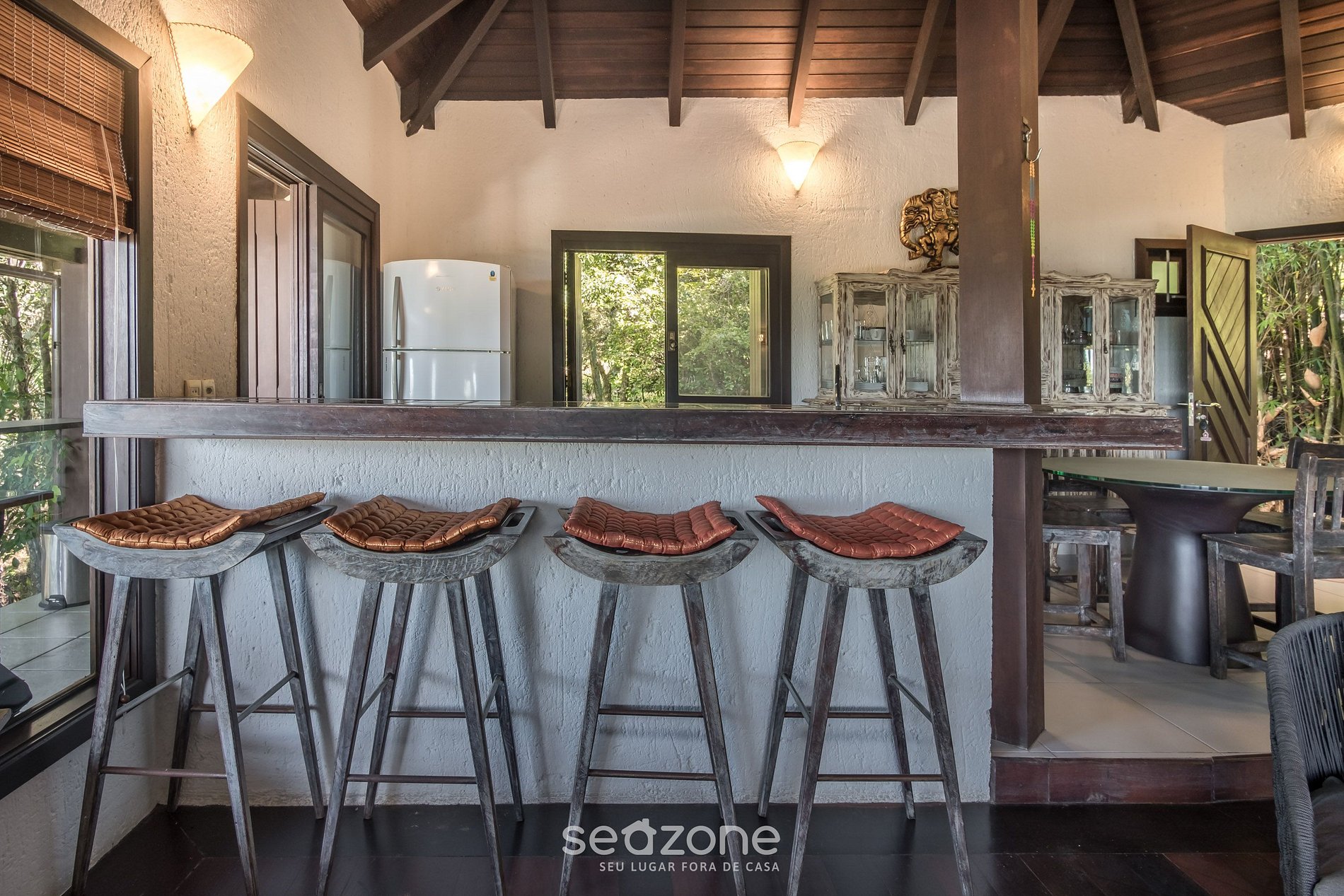 - 1 Suite con cama doble king size, armario, aire acondicionado y baño privado; - 1 Habitación con cama doble king size, aire acondicionado, vista al mar y armarios; - 1 Habitación con 2 camas individuales, vista a la naturaleza y armarios; - Sala de estar con sofá cama y TV de pantalla plana; - Amplia área de barbacoa con mesa para 6 personas, muebles de exterior y hermosa vista a la naturaleza; - Cocina completa con refrigerador, estufa, microondas, sandwichera, cafetera, licuadora, ollas, platos y utensilios; - Comedor con mesa y 4 sillas; - 1 Baños sociales; - Ropa de cama y baño de calidad hotelera (las sábanas y toallas adicionales son cobradas por Seazone); - Wi-Fi disponible; - 1 plaza de garaje cubierta.