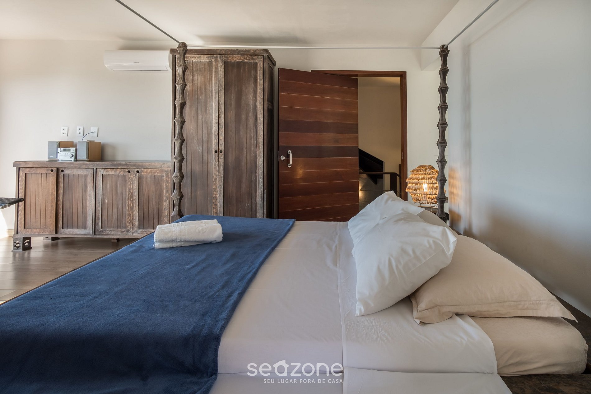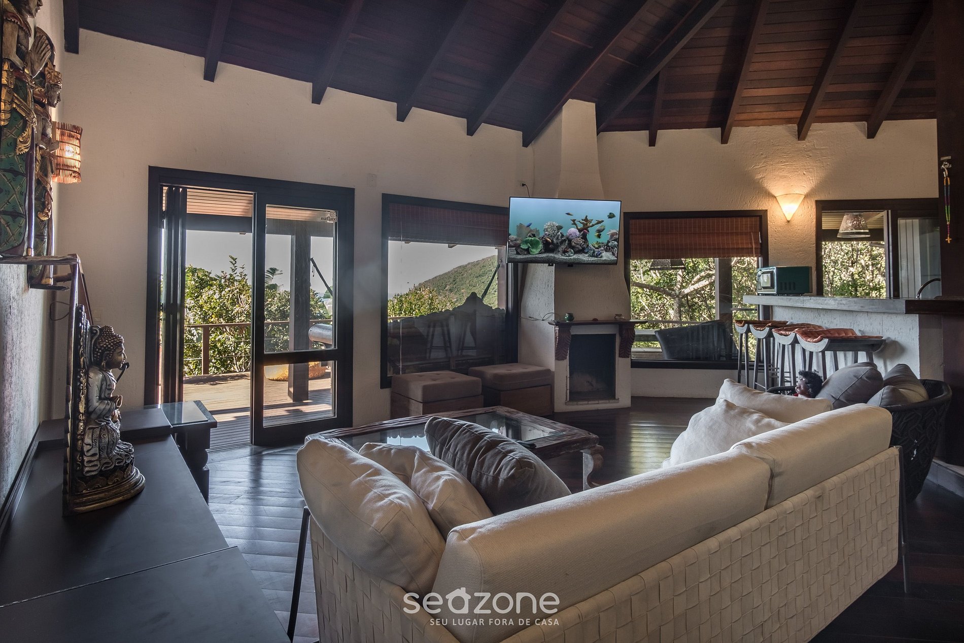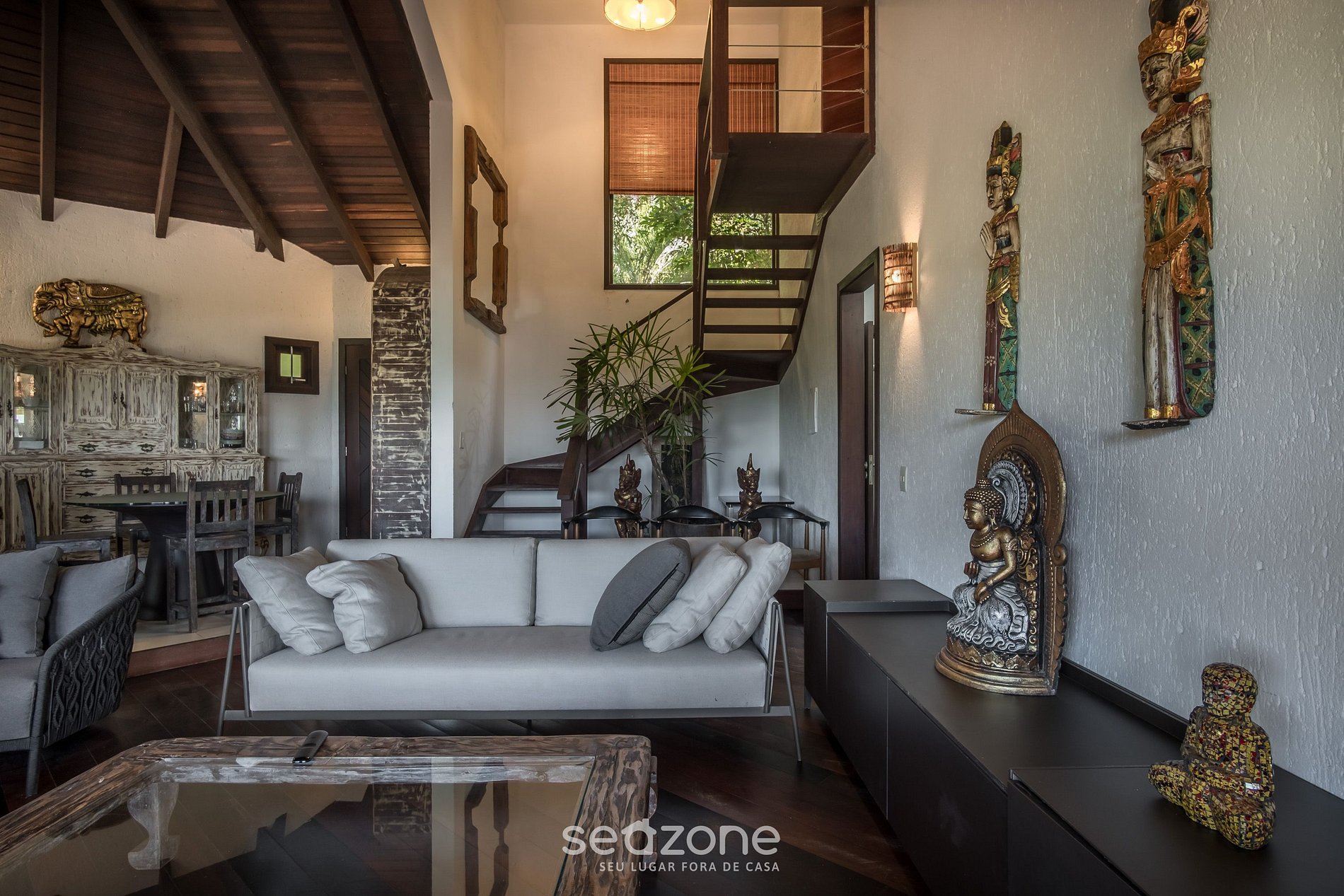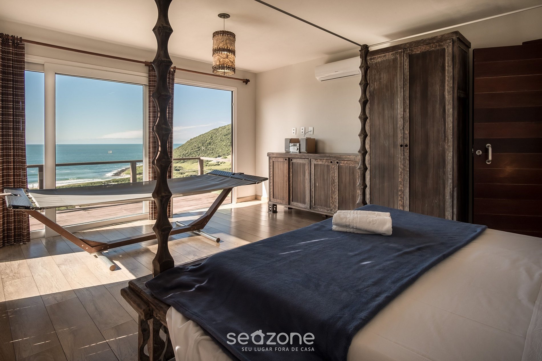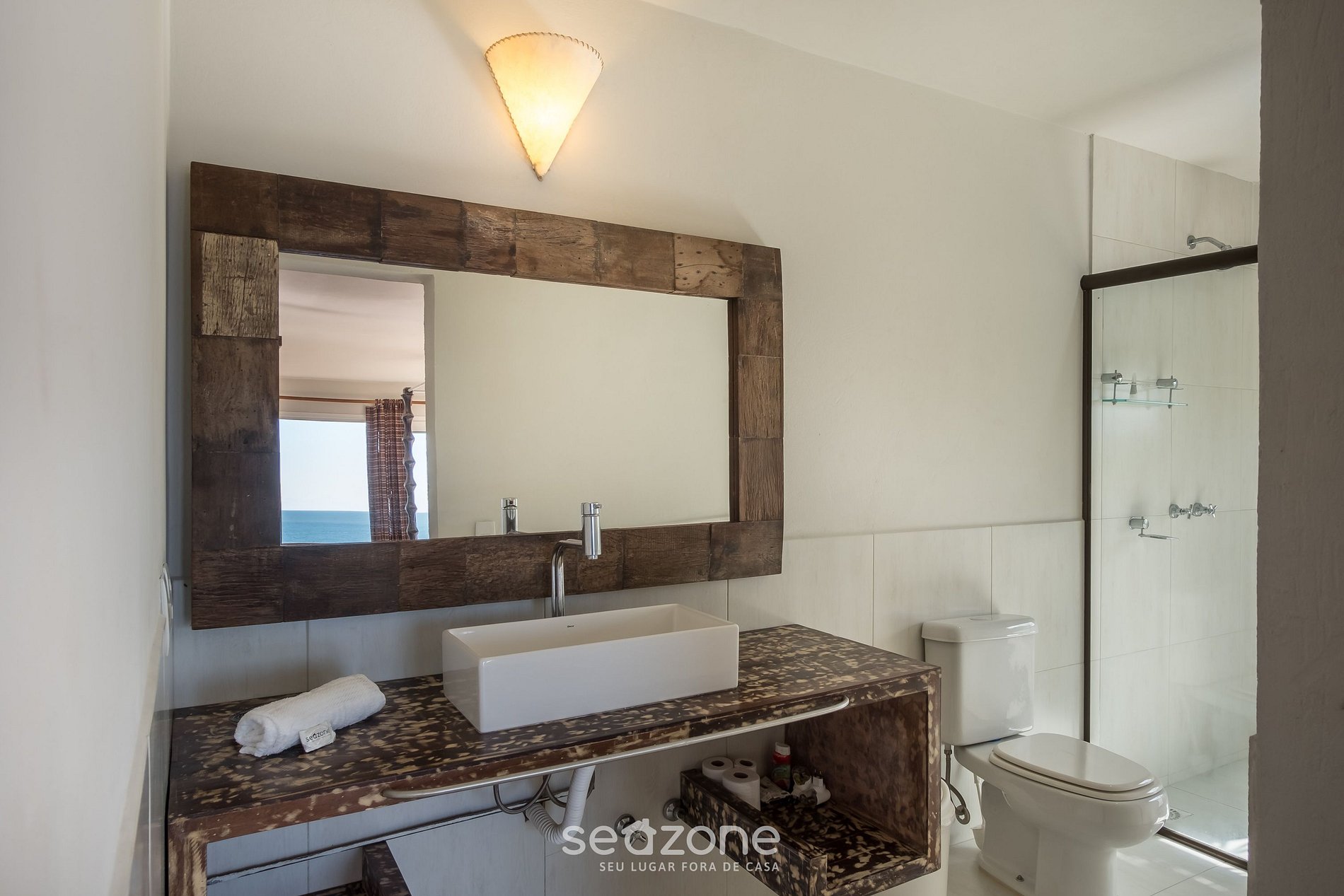 - 1 Suite con cama doble king size, armario, aire acondicionado y baño privado; - 1 Habitación con cama doble king size, aire acondicionado, vista al mar y armarios; - 1 Habitación con 2 camas individuales, vista a la naturaleza y armarios; - Sala de estar con sofá cama y TV de pantalla plana; - Amplia área de barbacoa con mesa para 6 personas, muebles de exterior y hermosa vista a la naturaleza; - Cocina completa con refrigerador, estufa, microondas, sandwichera, cafetera, licuadora, ollas, platos y utensilios; - Comedor con mesa y 4 sillas; - 1 Baños sociales; - Ropa de cama y baño de calidad hotelera (las sábanas y toallas adicionales son cobradas por Seazone); - Wi-Fi disponible; - 1 plaza de garaje cubierta.