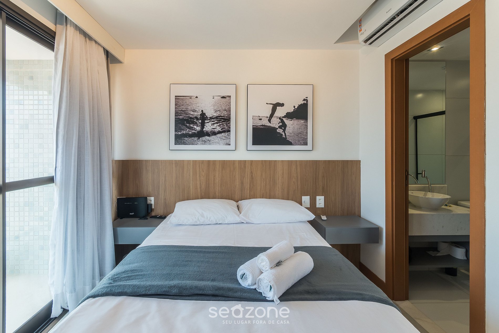 Este estudio climatizado integra cama doble, cocina completa, Smart TV y una mesa funcional en un diseño contemporáneo. El balcón amplía la experiencia con una vista panorámica de la ciudad. Piscina, gimnasio, coworking y plazas de estacionamiento rotativas completan la estructura. En una zona privilegiada, cerca del mar, Shopping Barra, mercados, atracciones culturales y excelentes restaurantes.