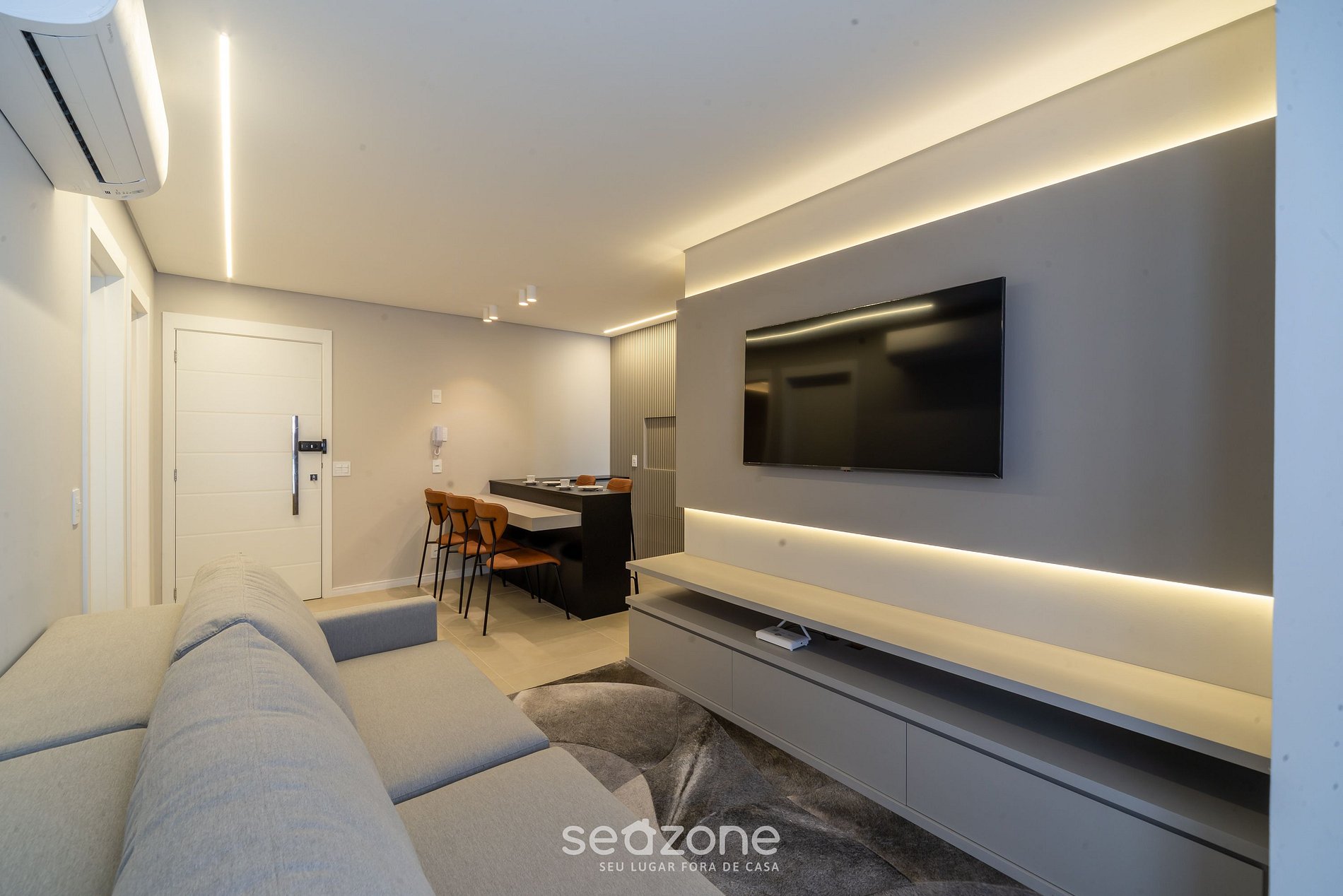 - Salón con sofá cama, smart TV y aire acondicionado;