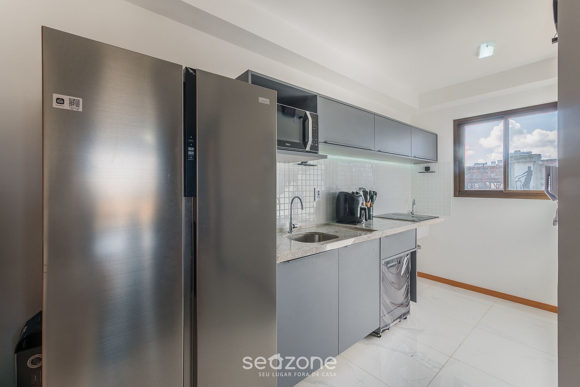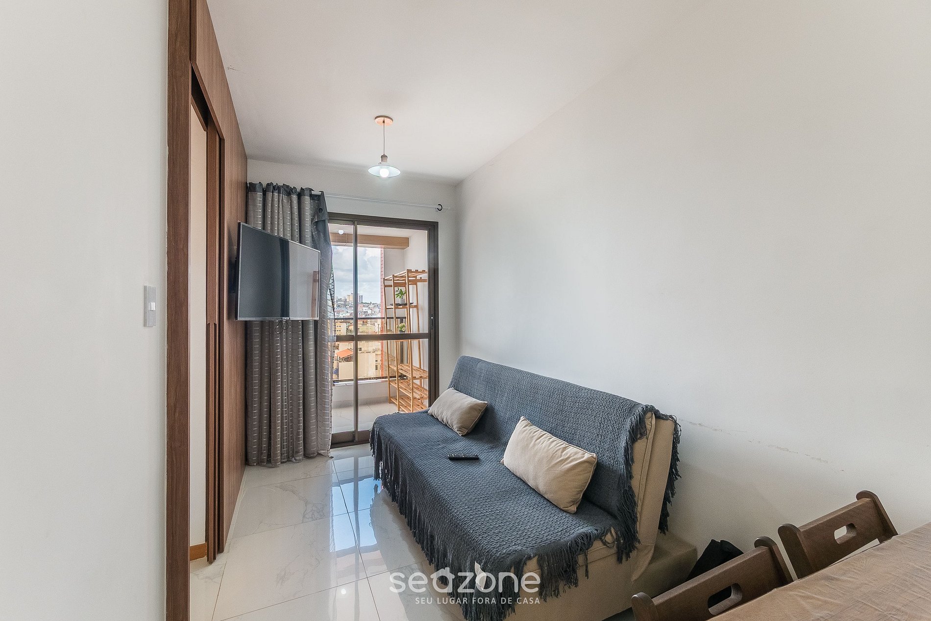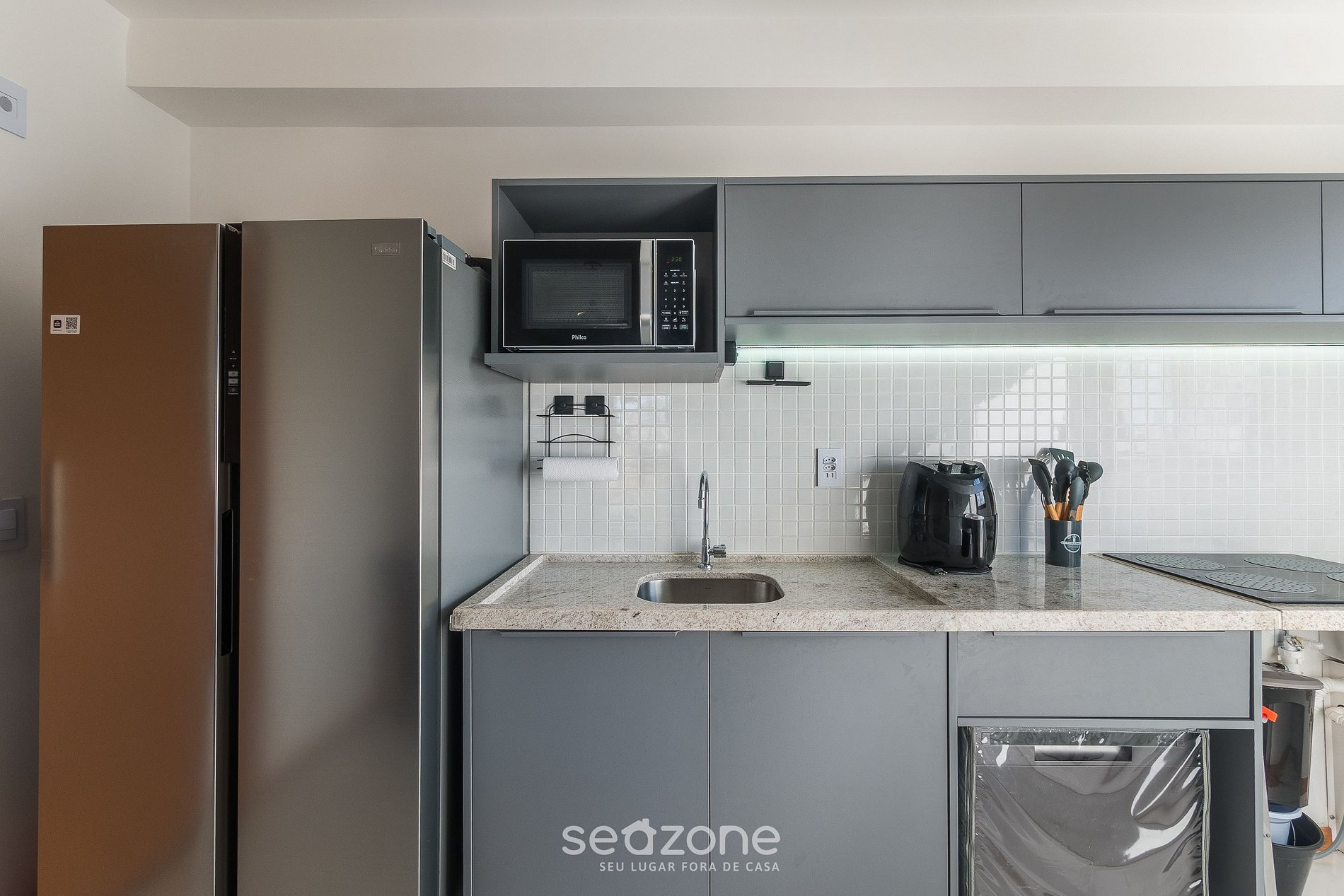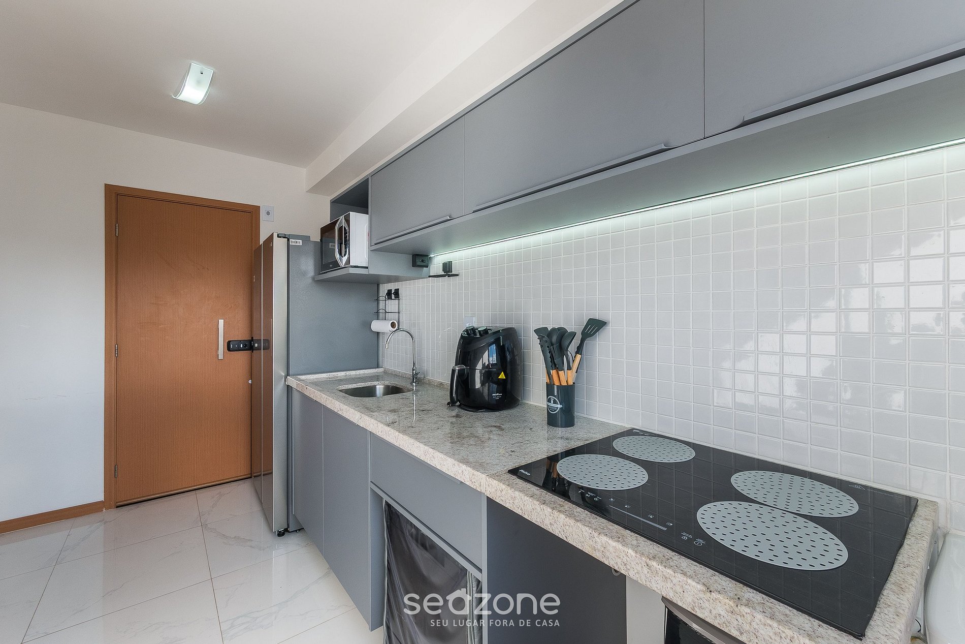 Suite climatizada con cama matrimonial, sala con sofá cama, Smart TV, cocina equipada y un amplio balcón con vista urbana. A 750 m del paseo marítimo y cerca del Parque Costa Azul, restaurantes, mercados y las principales vías de la ciudad. El condominio ofrece piscina en la azotea, gimnasio y coworking.