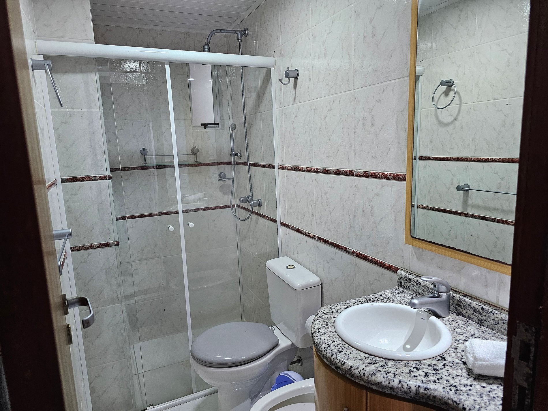- Cocina totalmente equipada con refrigerador, estufa de gas, microondas, sandwichera, cafetera eléctrica, hervidor eléctrico, licuadora, copas de vino, ollas, platos y utensilios;