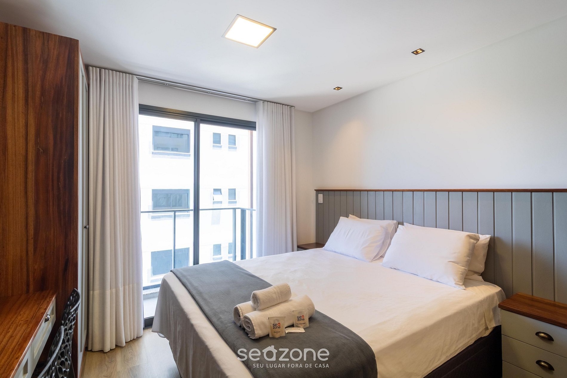 A solo 50 m de la Playa de Armação, este studio moderno ofrece cama queen, sofá-cama doble, aire acondicionado, Smart TV, cocina completa, espacio de comedor integrado, balcón y Wi-Fi. El condominio cuenta con piscina en la azotea con borde infinito y vista deslumbrante al mar. A minutos de Beto Carrero, del Muelle de Armação, mercados, bares y excelentes opciones gastronómicas.
