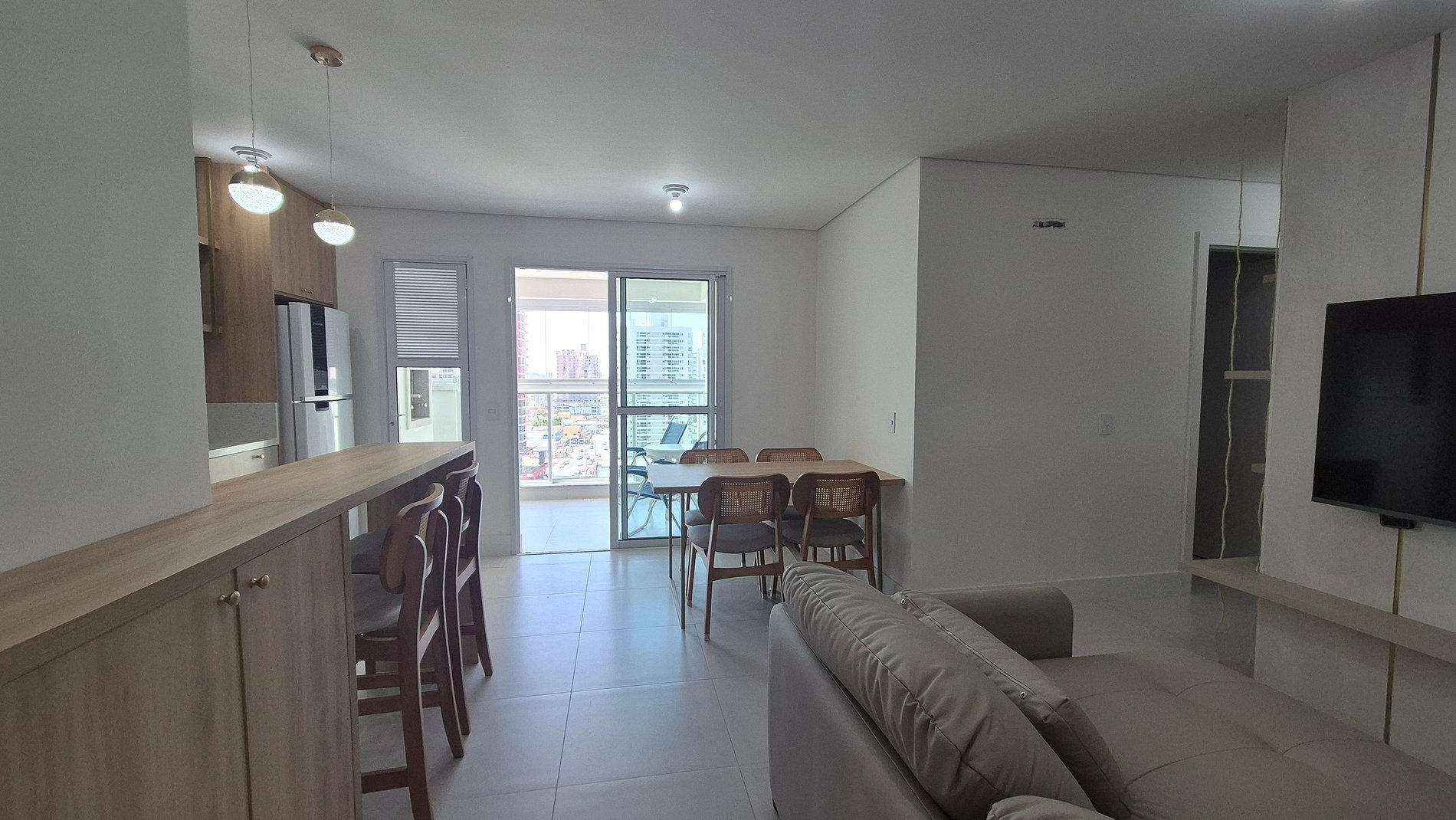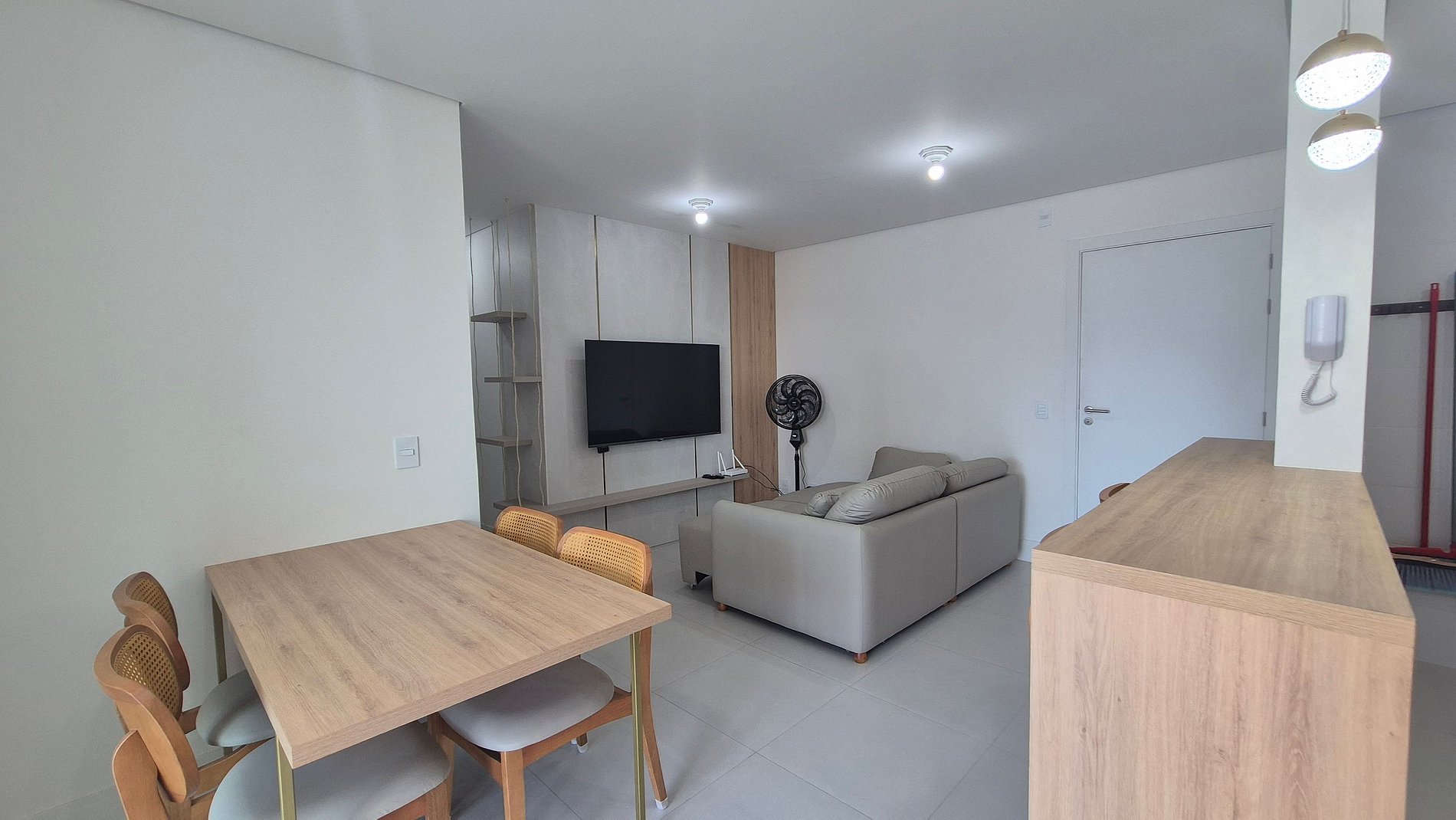 - Sala de estar con sofá, aire acondicionado y Smart TV;