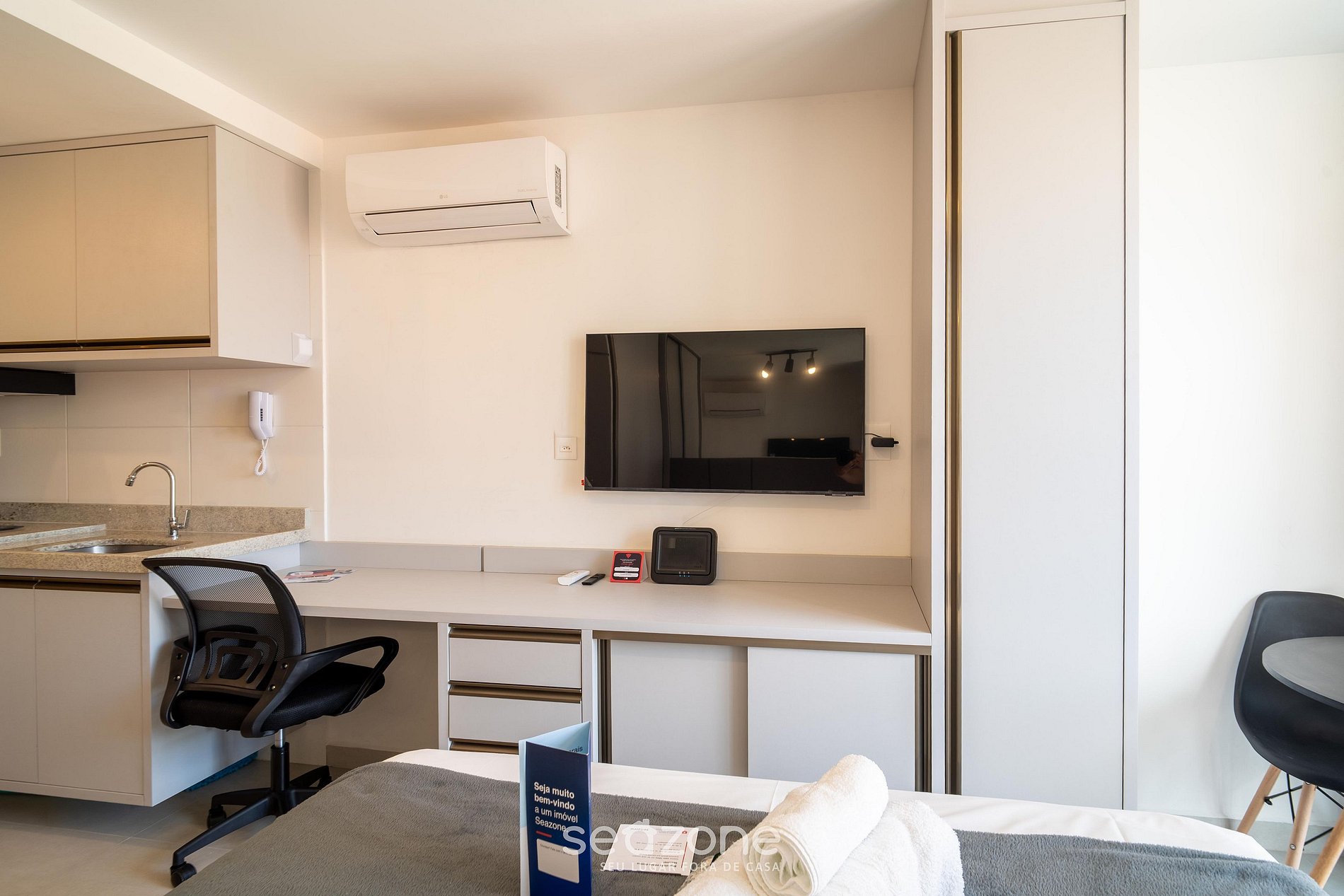 - Cama doble, Smart TV, armario, espacio para portátil y aire acondicionado;