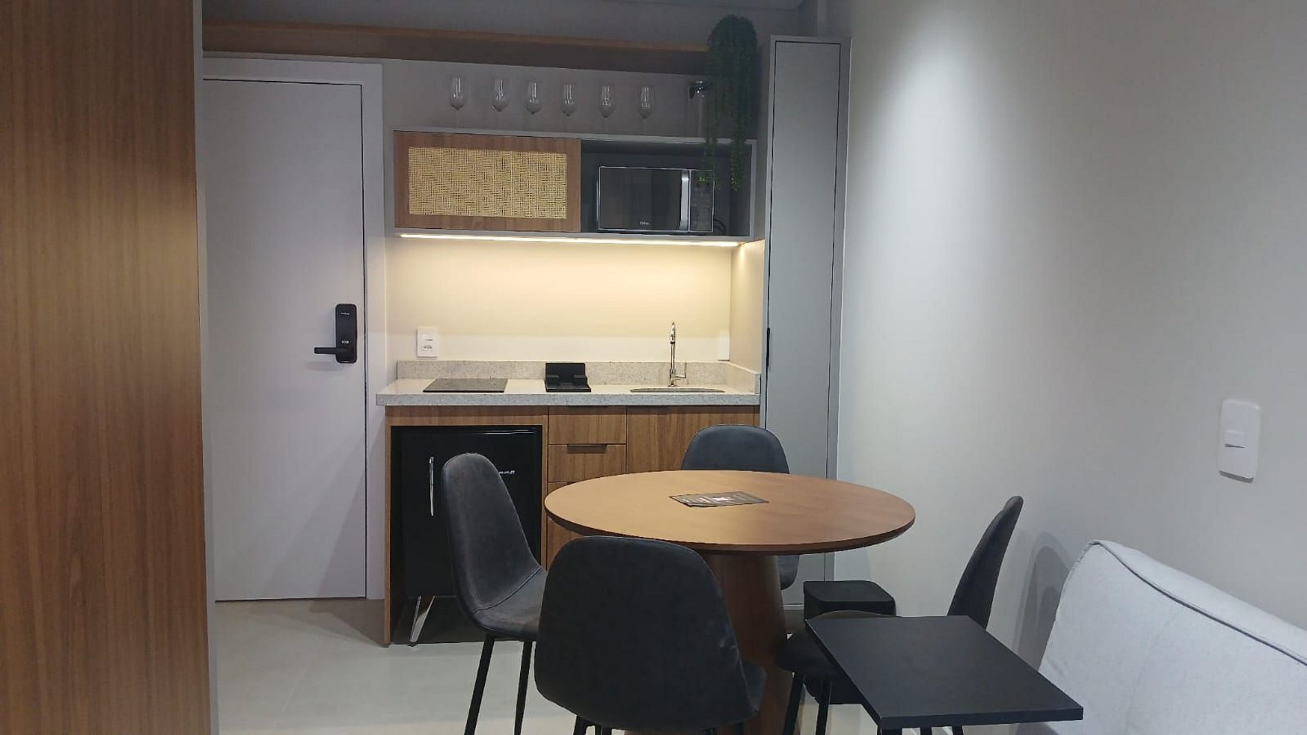 Con diseño contemporáneo y una atmósfera funcional, este studio ofrece confort y una estructura completa. Cuenta con cama queen, sofá cama, Smart TV, aire acondicionado y balcón. Cocina equipada con electrodomésticos esenciales, utensilios y espacio para comidas. El edificio dispone de piscina con borde infinito y rooftop gourmet. Ubicación estratégica, cerca de Surfland, la Laguna de Ibiraquera y playas icónicas del sur de Santa Catarina.