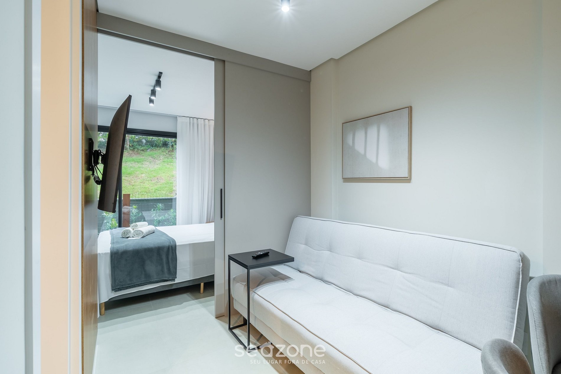 - Sala de estar con sofá cama individual y Smart TV;