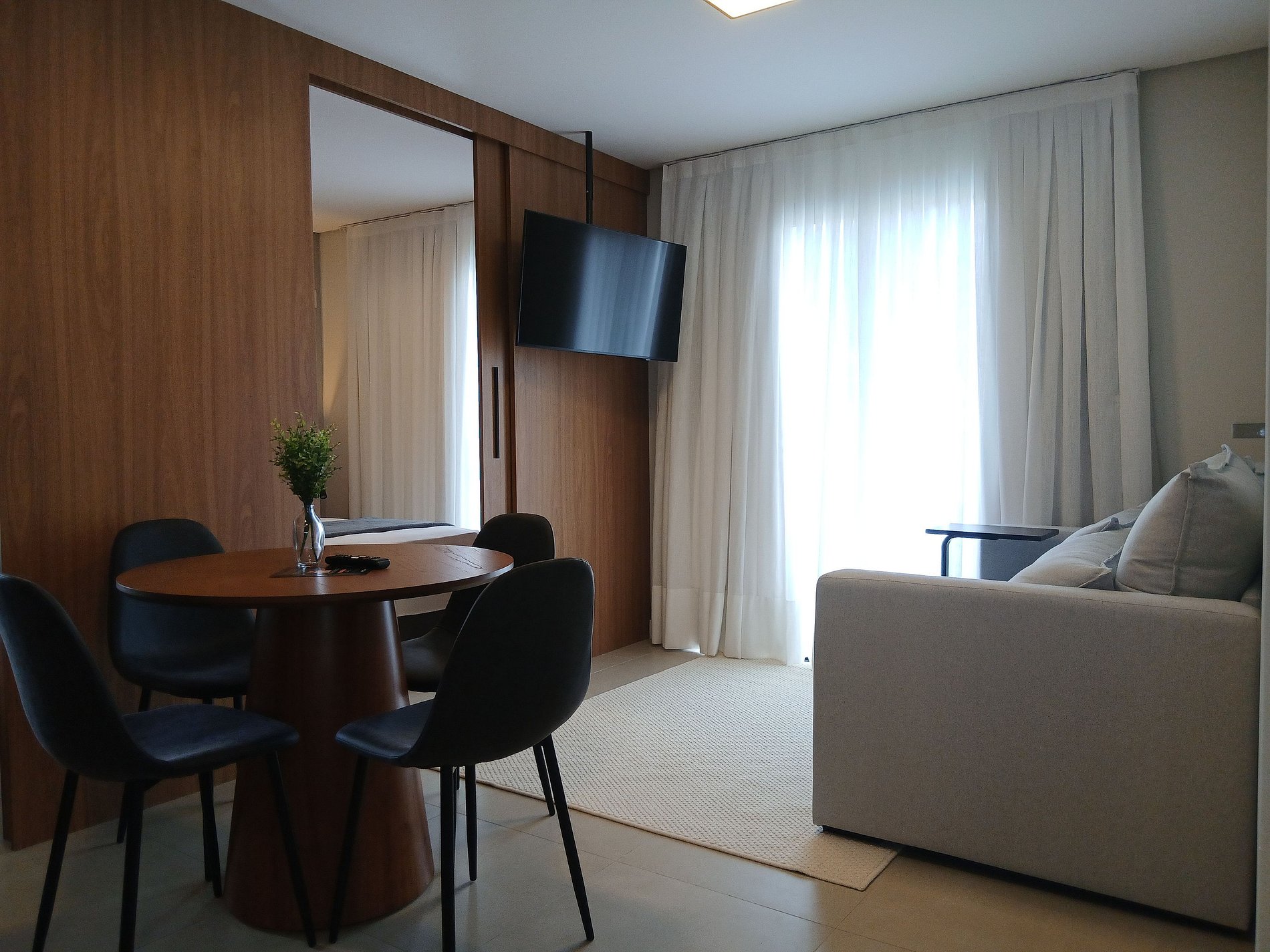 Sala de estar con sofá cama doble y Smart TV;