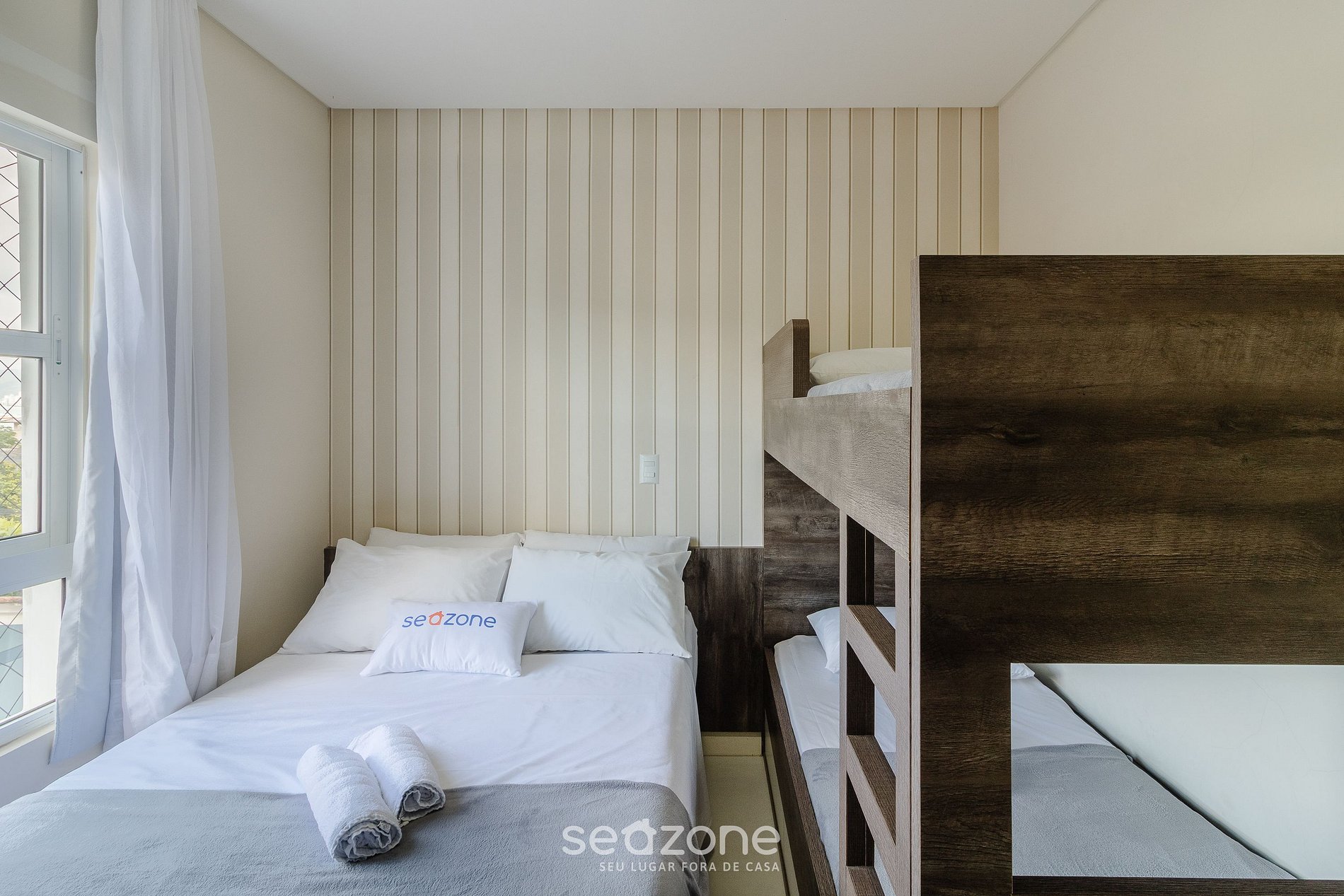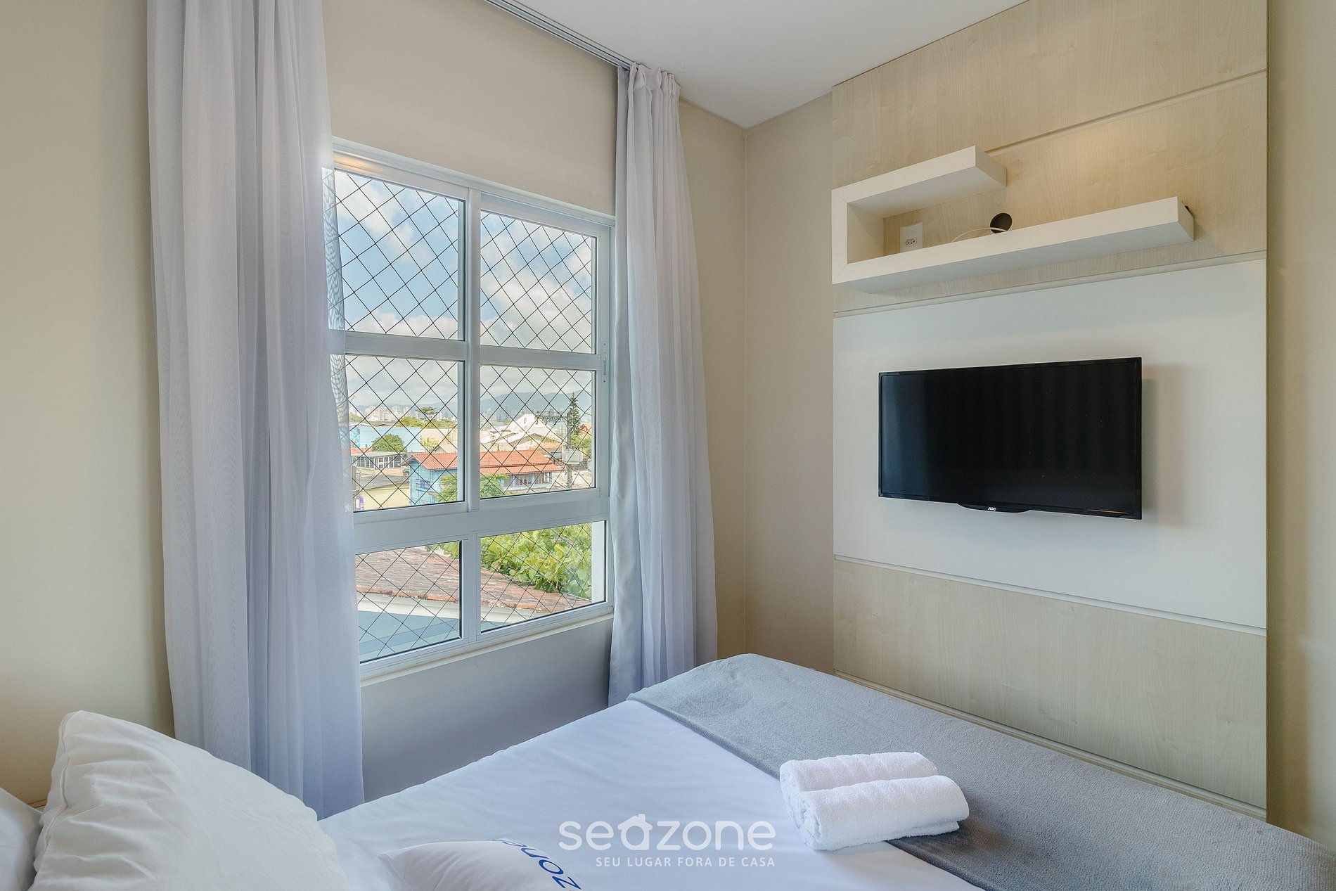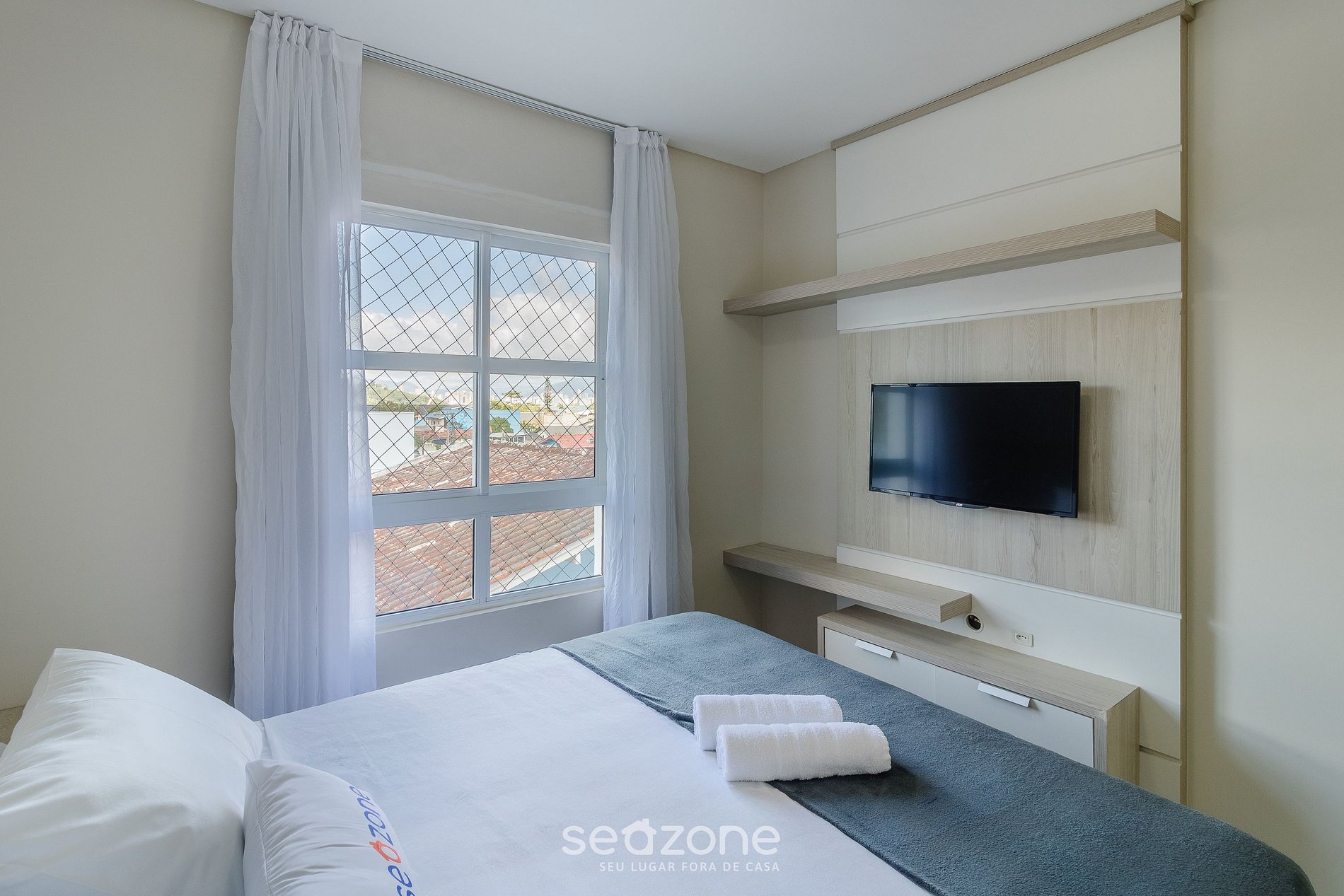 Con diseño limpio y ambientes amplios, ofrece suite con cama queen, dormitorios climatizados, sala con sofá, Smart TV y cervecera, cocina equipada y balcón gourmet con parrilla y vista al mar. Áreas comunes con piscina y salón de fiestas. En el Centro, cerca de la orla, mercados, cafés y atractivos de la región.