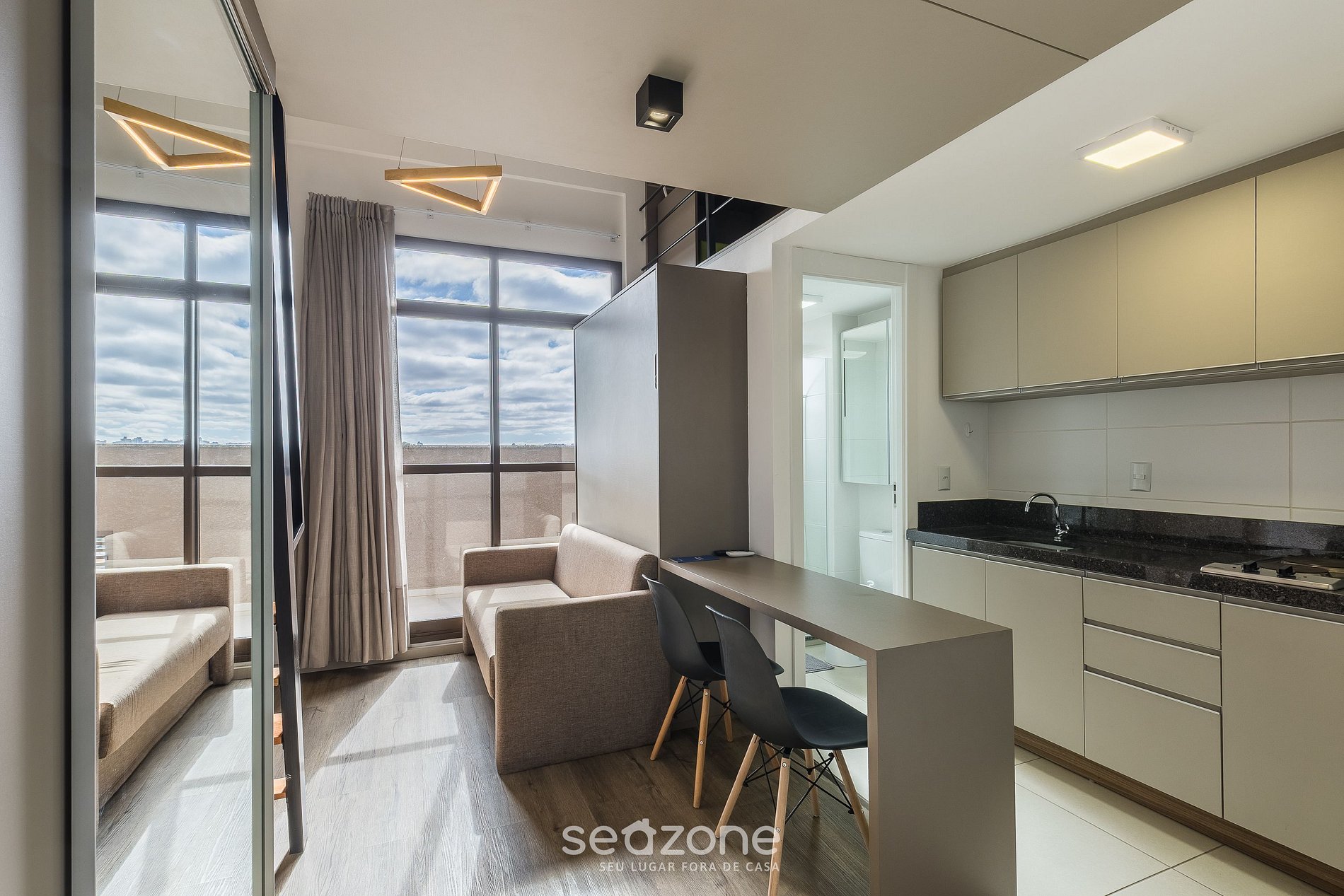 ¡Su refugio moderno en Curitiba! Este estudio compacto e inteligente ofrece el máximo confort para su estancia. Relájese en la cama de matrimonio viendo su serie favorita en la Smart TV con el ambiente perfectamente climatizado por el aire acondicionado. El gran atractivo es el balcón con parrilla, un lujo poco común para apartamentos compactos. ¡Reserve ahora y asegure una experiencia urbana completa y sofisticada en la capital paranaense!