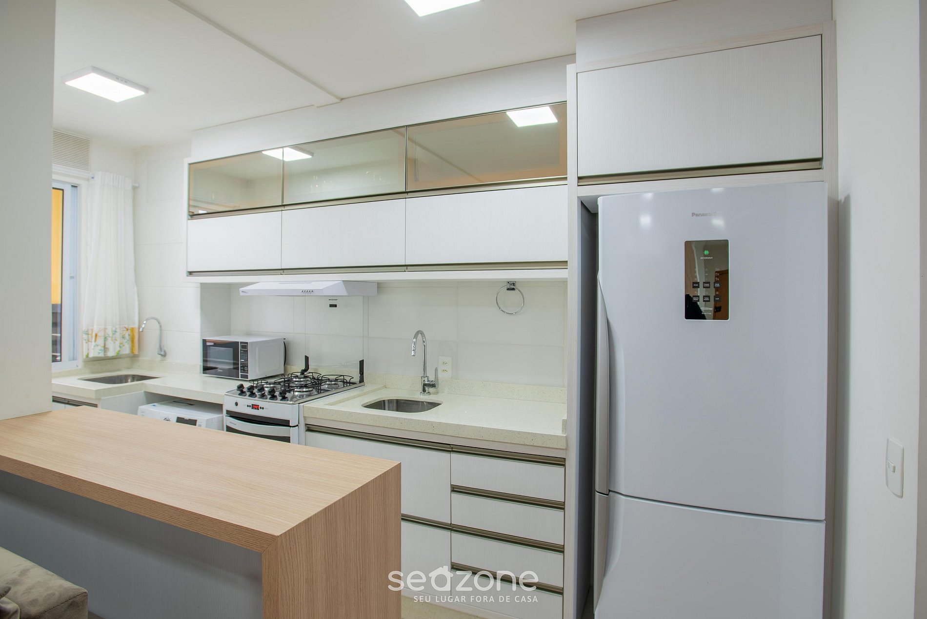 - Cocina totalmente equipada con nevera, cocina de gas y horno, horno eléctrico, cafetera eléctrica, microondas, sandwichera, hervidor eléctrico, licuadora, copas de vino, ollas, platos y utensilios;