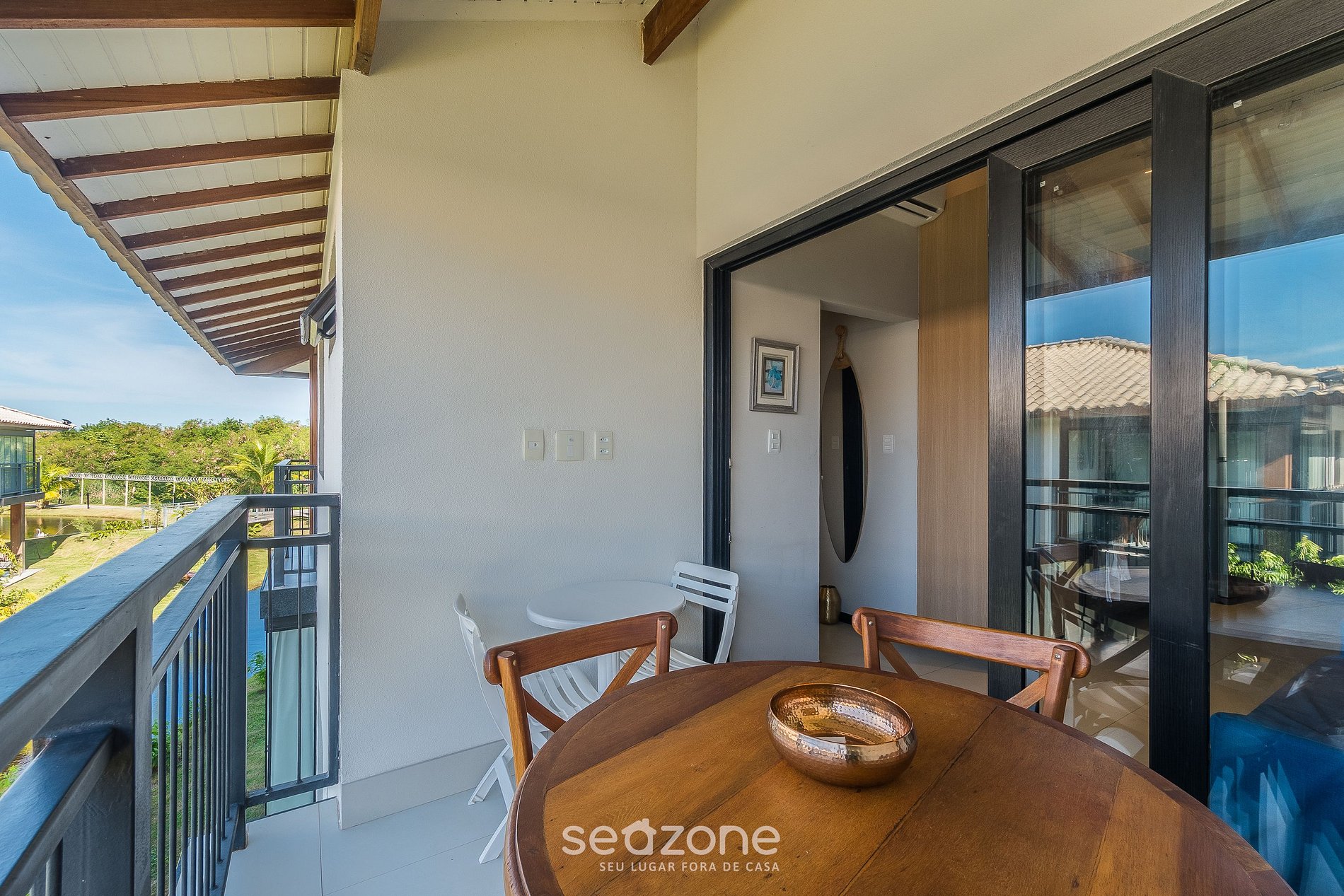 Ambiente acogedor y bien distribuido, con dormitorio y sala con aire acondicionado, sofá cama, cocina equipada y área de comedor. El balcón con vista al lago aporta un toque especial a la experiencia. El condominio cuenta con piscina, sauna, gimnasio y área infantil. A pocos minutos de la playa, mercados y restaurantes de Praia do Forte.