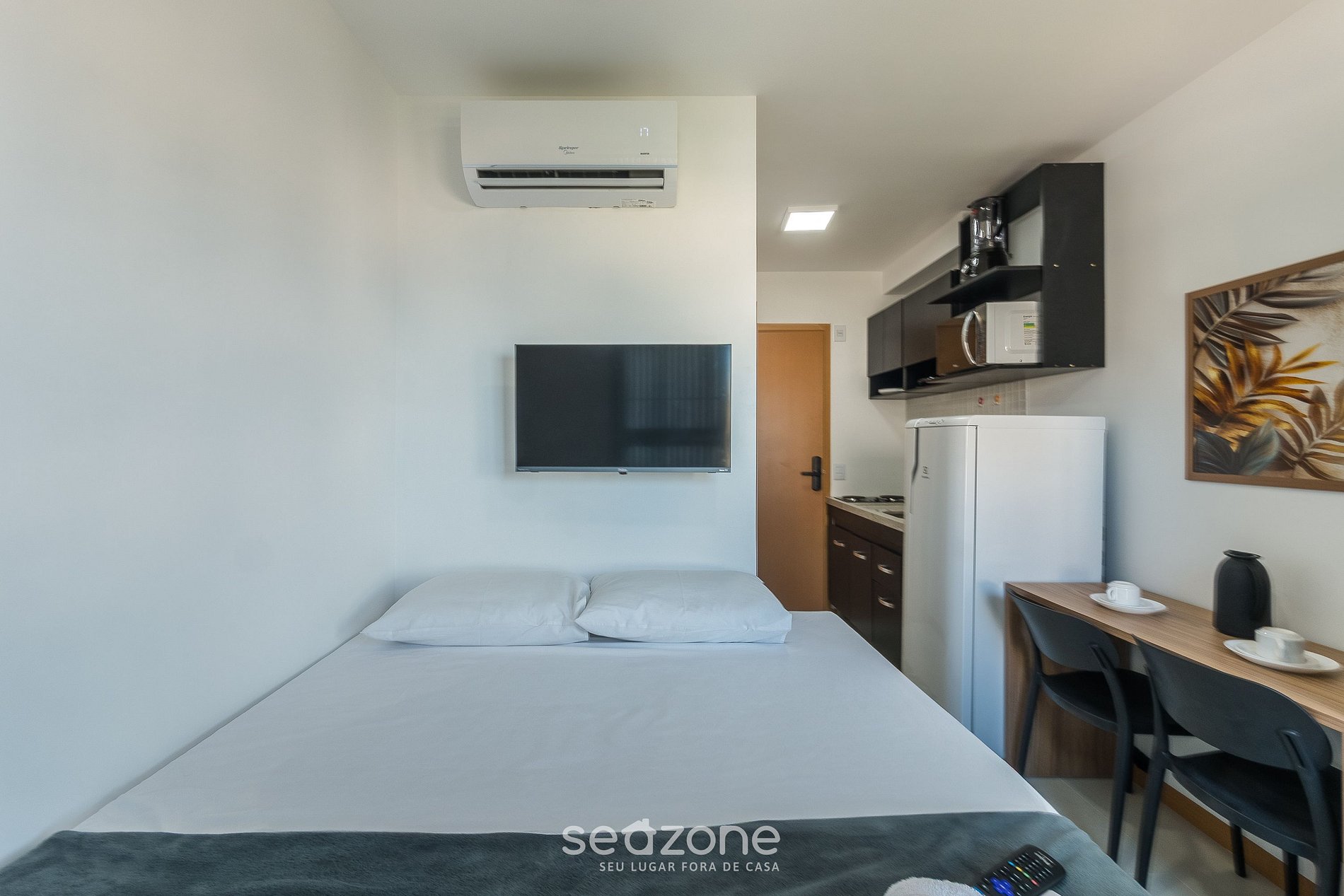 - 1 cama queen, Smart TV, armario, ventilador de techo y aire acondicionado;
