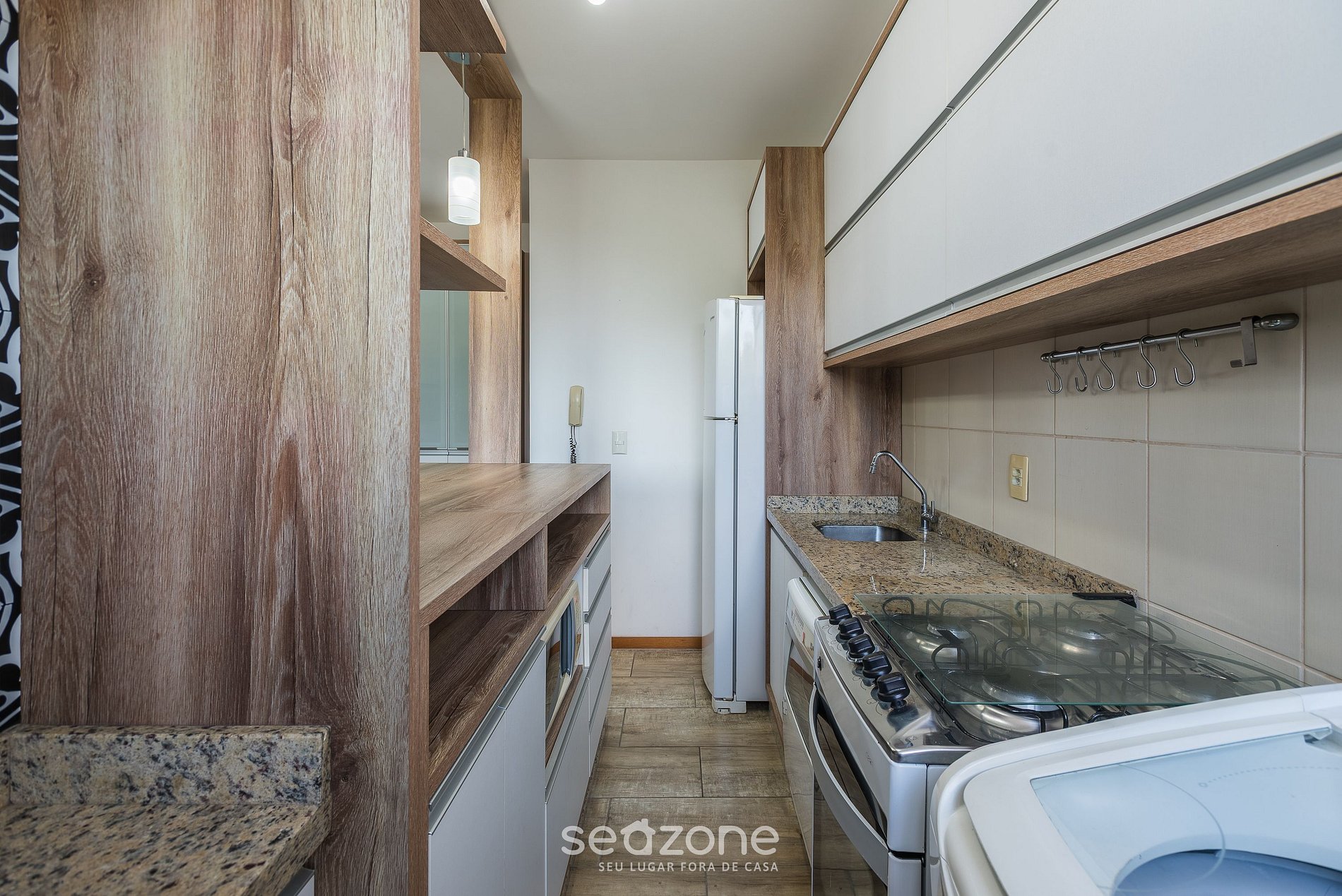 - Cocina totalmente equipada con refrigerador, estufa (de gas), horno empotrado, microondas, sandwichera, cafetera eléctrica, hervidor eléctrico, licuadora, copas de vino, ollas, platos y utensilios;