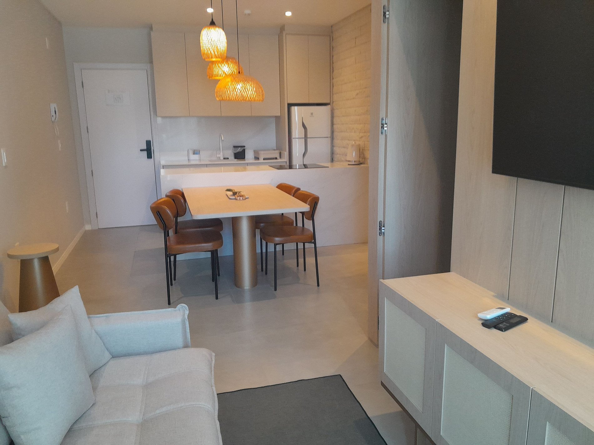 A pocos pasos de la playa, este apartamento fue pensado para quienes valoran confort y ubicación. Ofrece dormitorio climatizado, sala con Smart TV, cocina equipada, comedor y balcón con vista a la ciudad. El edificio cuenta con piscina climatizada y jacuzzi en el rooftop, además de gimnasio. Ubicación estratégica cerca del mar y de los principales puntos de Meia Praia.
