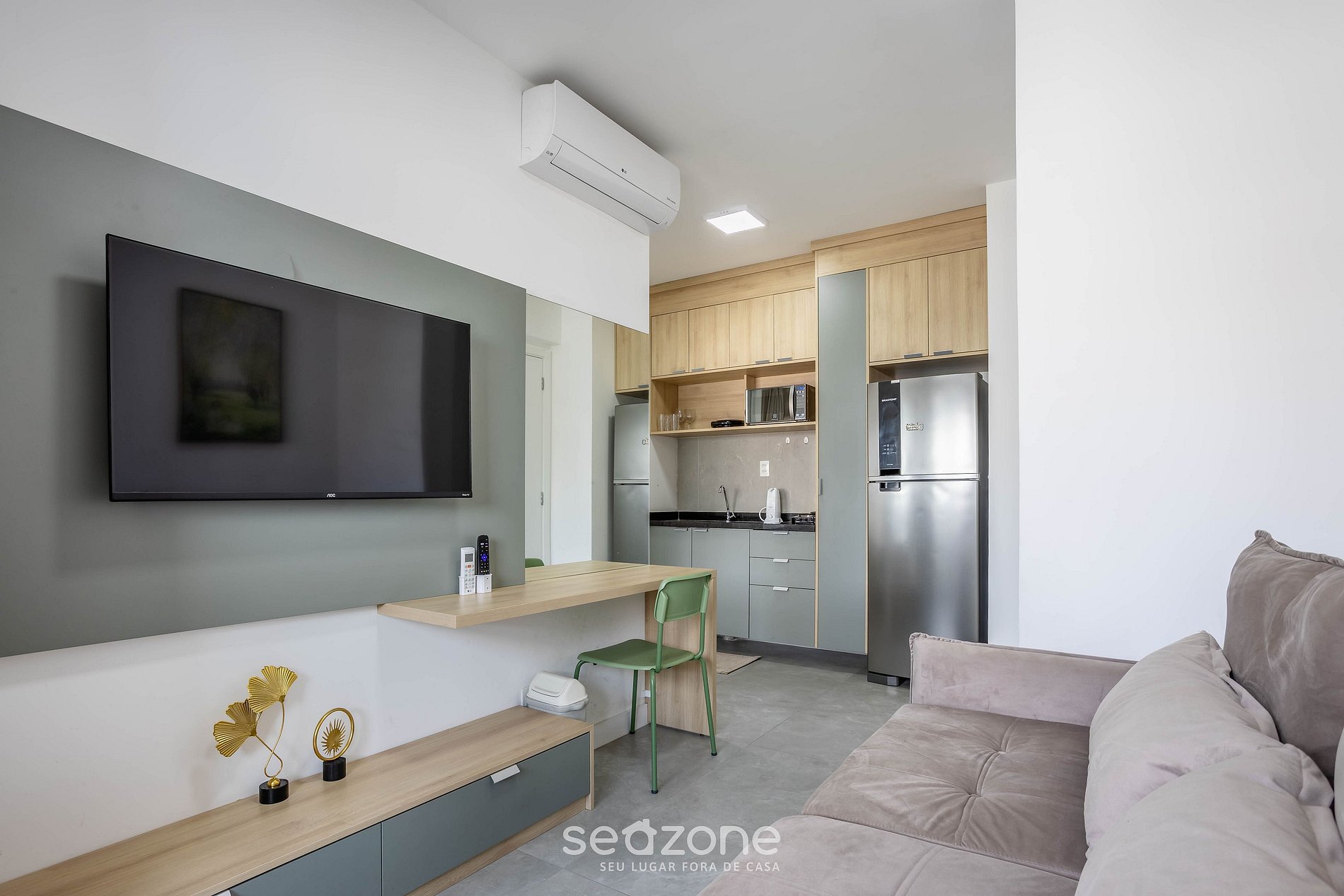 - Sala de estar con sofá cama individual, aire acondicionado y Smart TV;