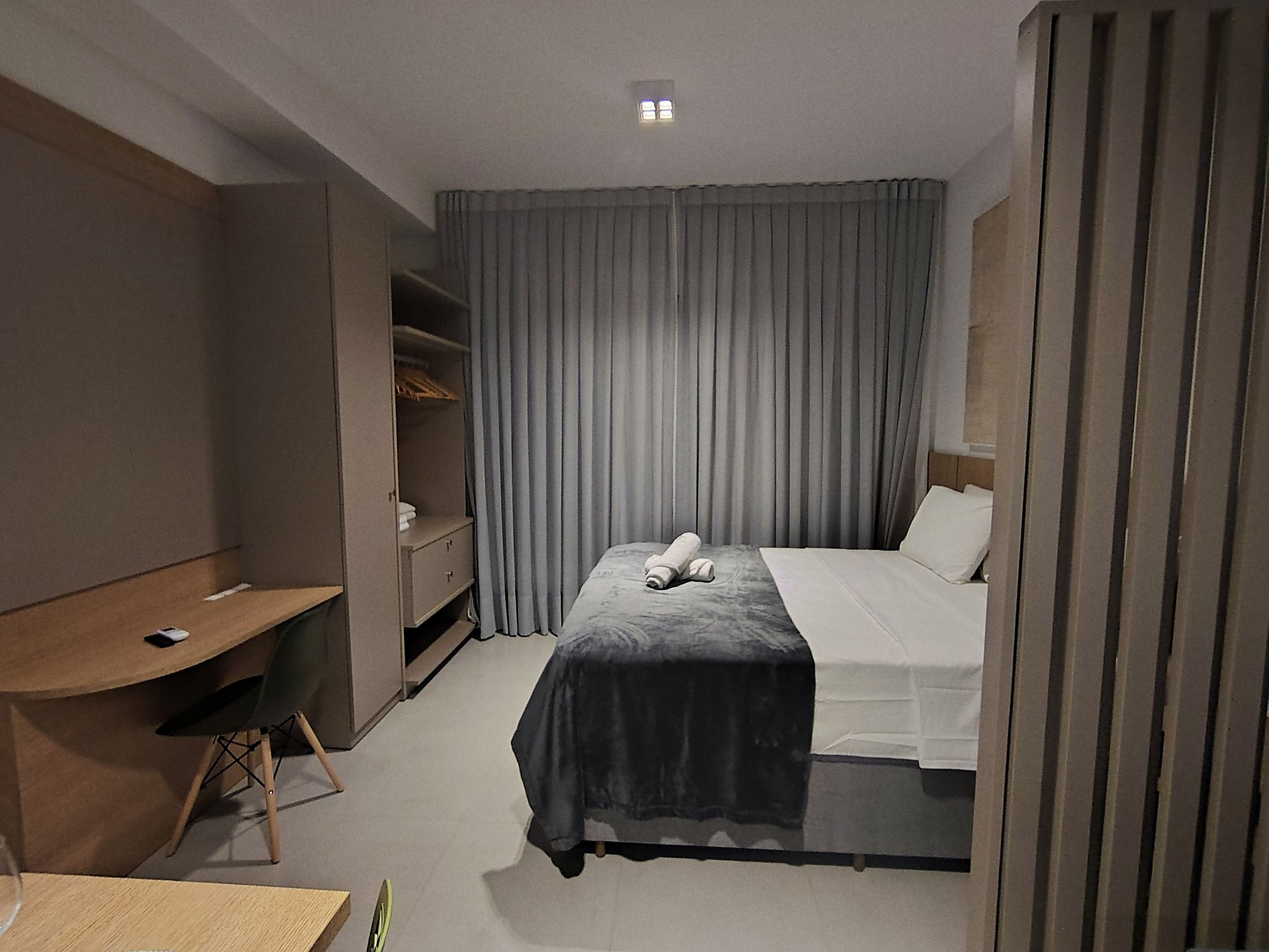 Studio con atmósfera contemporánea, diseñado para ofrecer confort y organización. Cuenta con cama queen, sofá cama, armarios empotrados, cocina totalmente equipada y lavadora y secadora dentro del alojamiento. El rooftop con piscina y vista al mar completa la experiencia. Ubicación estratégica en Jurerê, a pocos metros de la playa.