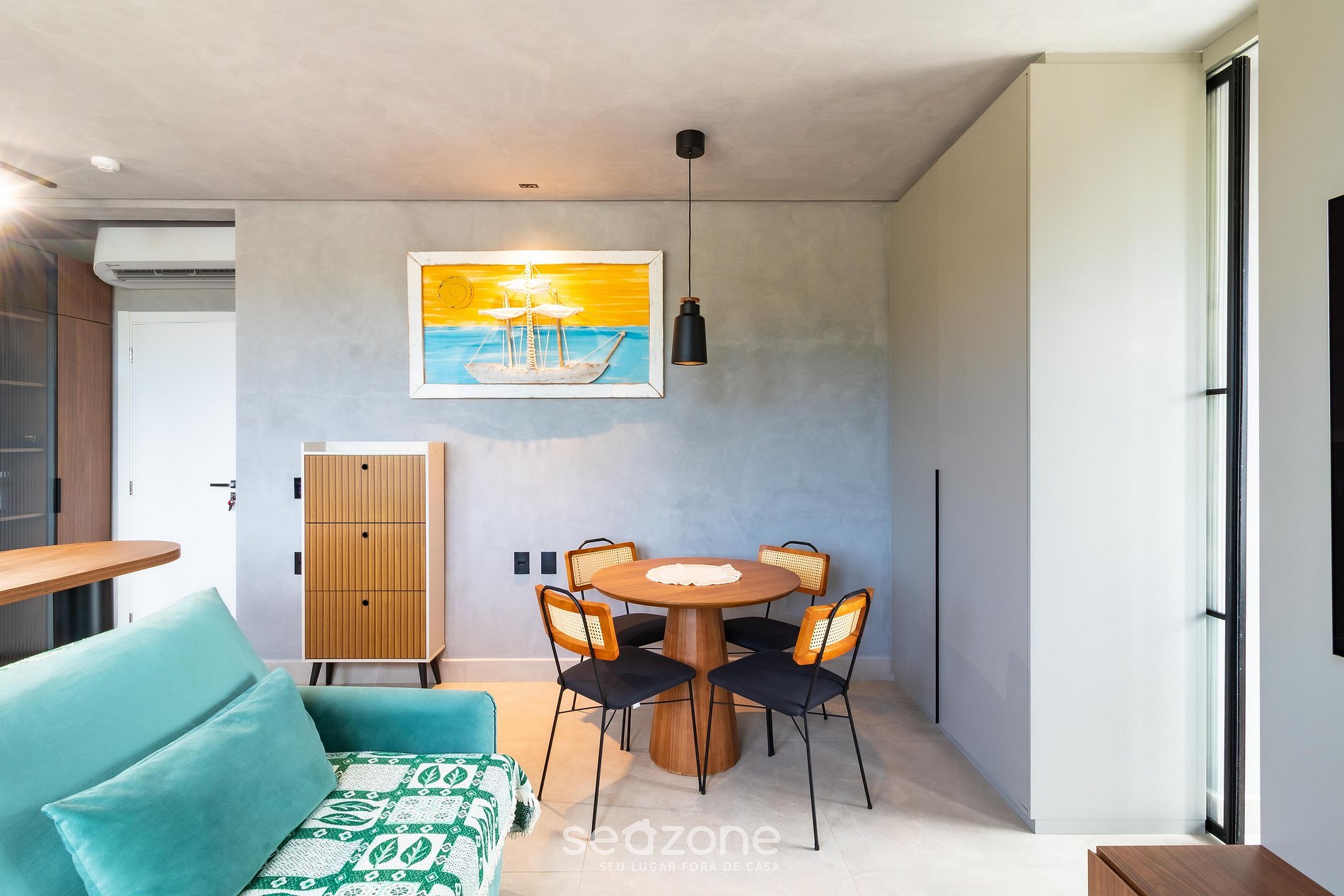 Diseño funcional y ambientes climatizados definen este apartamento en Bombinhas. Ofrece suite cómoda, sala integrada, cocina completa, lavandería y parrilla privada. El condominio cuenta con piscina, jacuzzi, gimnasio y espacio infantil. Ubicación estratégica, a pocos minutos de la playa y cerca de mercados y restaurantes.