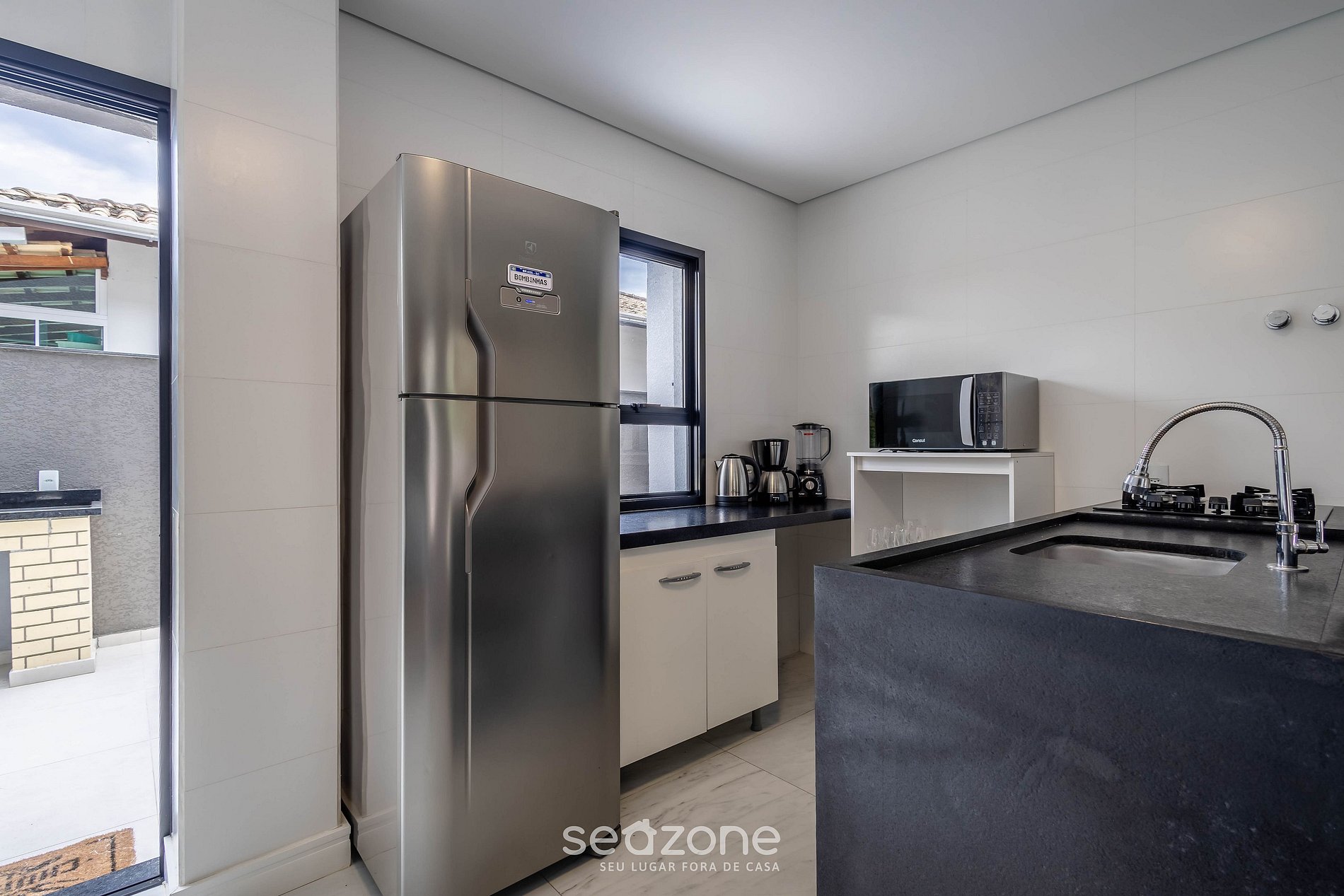 Cocina totalmente equipada con refrigerador, cocina tipo cooktop (gas), microondas, sandwichera, cafetera eléctrica, hervidor eléctrico, licuadora, vajilla y utensilios;